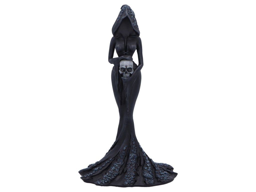 Pôvabná gotická figúrka zobrazujúca ženu bez tváre a s kapucňou, ktorá jemne drží lebku; originálny dizajn od Nemesis Now. Precízny odliatok z živice, matný čierny povrch a elegantné kvetinové akcenty na splývavom rúchu. Balené vo farebnej škatuľke s priehľadným okienkom a firemnou potlačou, takže je chránené a pripravené na okamžité vystavenie alebo darovanie. Ideálne pre zberateľov gotického umenia, nadšencov fantasy a milovníkov temnej ženskej symboliky - Ručne maľované - Materiál: živica - Výška: približne 20 cmDodatočné parametre