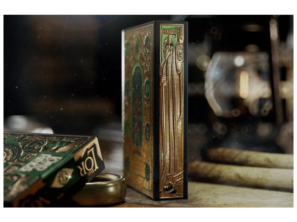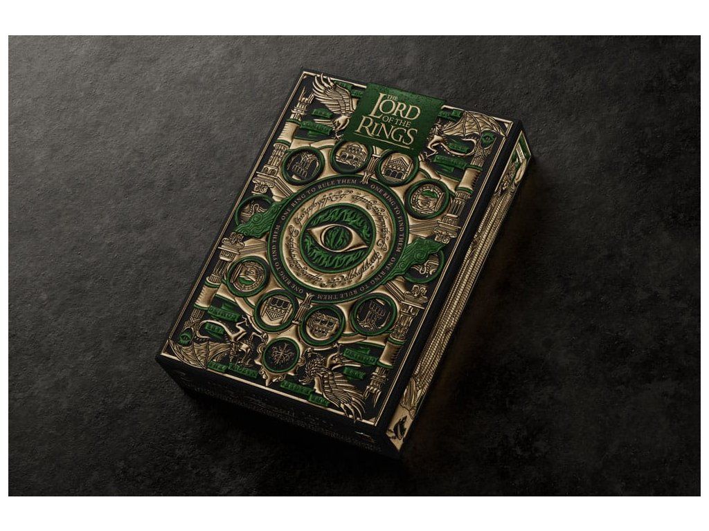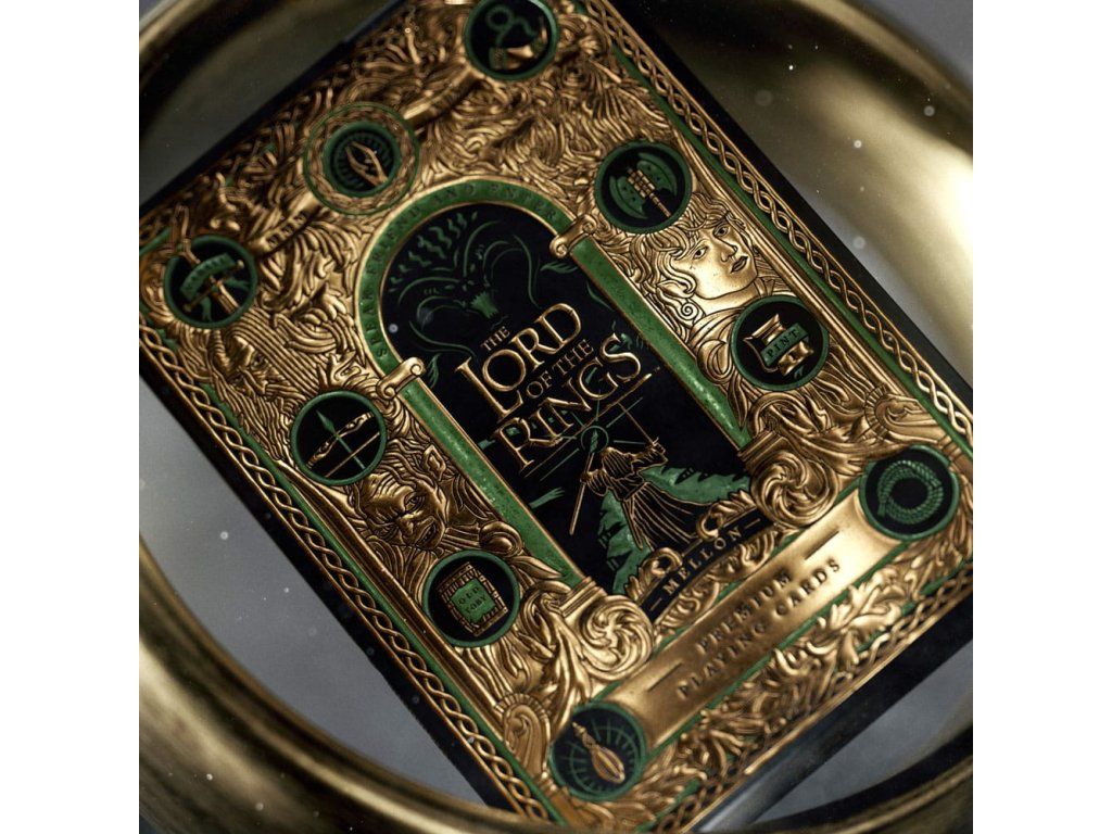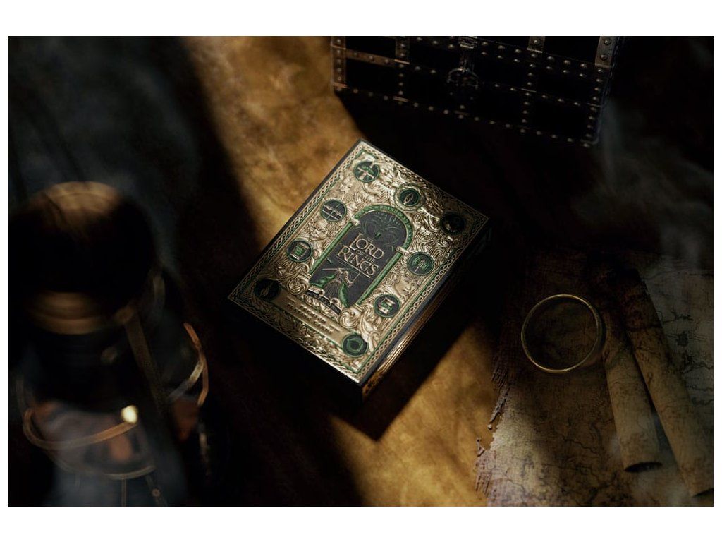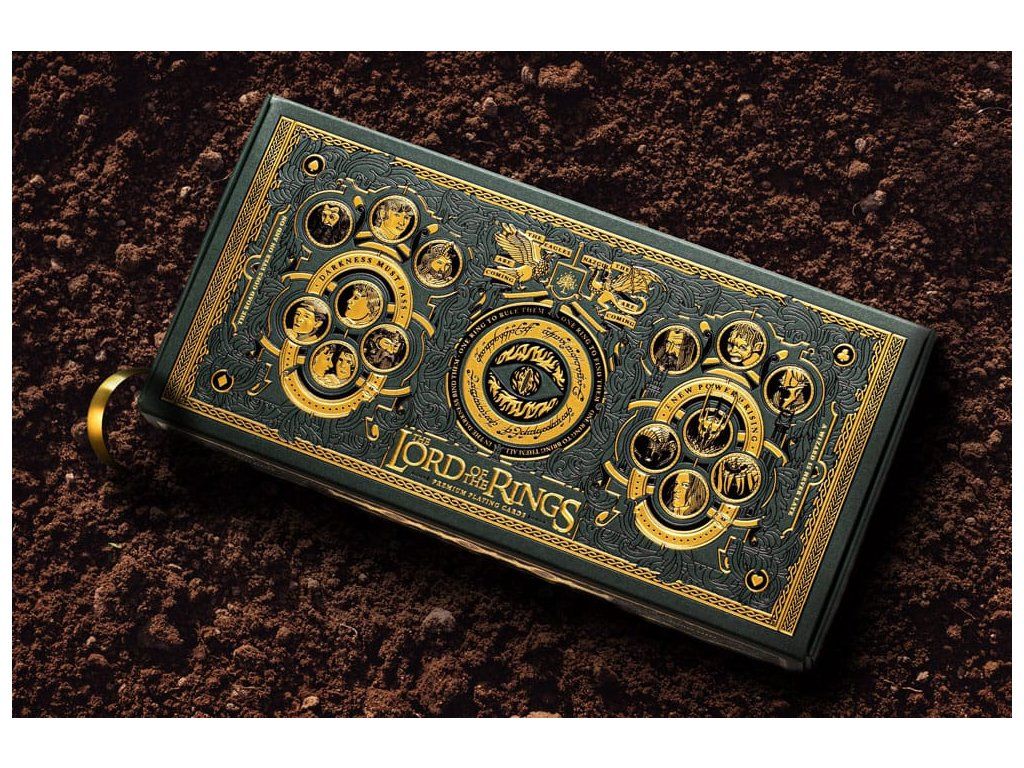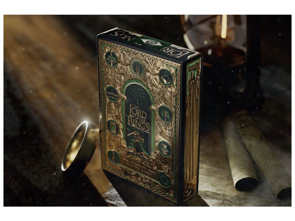 Obsahuje obľúbené postavy z filmovej trilógie Pán prsteňov - od Froda a ostatných členov Spoločenstvo prsteňa až po Gluma, Sarumana a Temného pána Saurona. Balenie sleduje ich cestu z Kraja do Mordoru a ich dobrodružstvá medzi nimi. Táto prémiová darčeková sada obsahuje štyri balíčky: dva v štandardnej podobe a dva balíčky zo špeciálnej edície GOLD FOIL s lesklou zlatou fóliou na zadnej strane každej karty. Súprava je zabezpečená magnetickým uzáverom - vnútri je mapa Stredozeme! - Prémiové hracie karty - Balenie: plnofarebná kartónová škatuľa - 4 balíčky po 52 kartách, ideálne na poker - Vyrobené v AmerikeDodatočné parametre