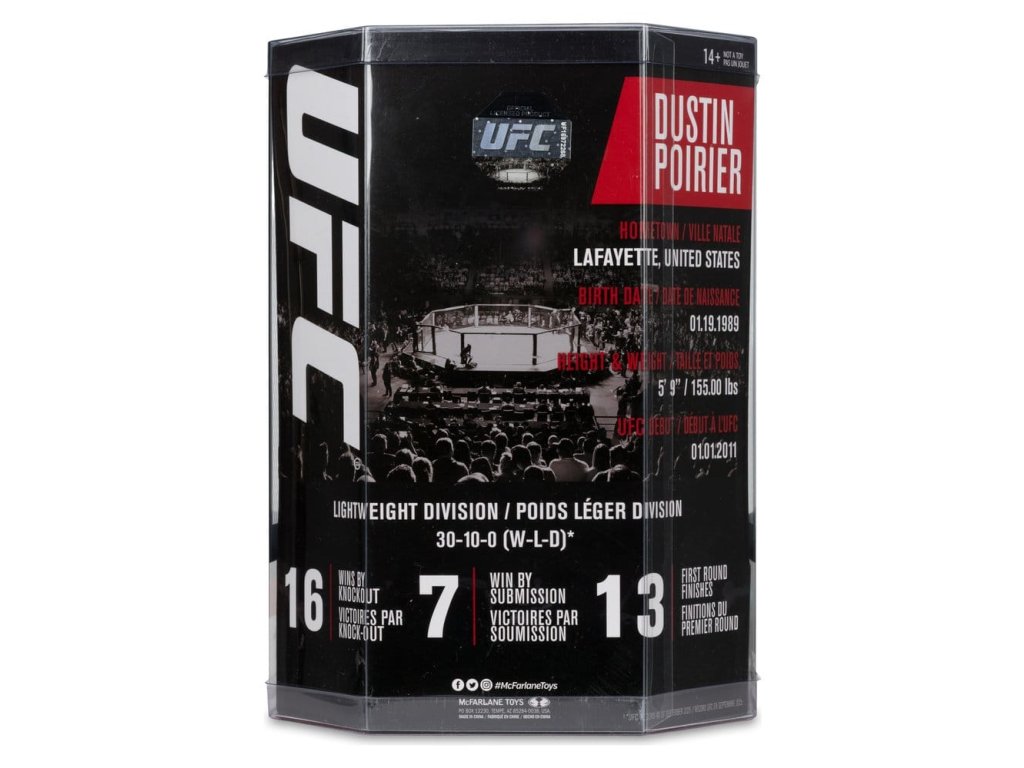 Dustin Poirier je americký bojovník zmiešaných bojových umení a bývalý dočasný šampión UFC v ľahkej váhe, známy svojou tvrdosťou, údernými schopnosťami a odolnosťou v oktagone. Narodil sa 19. januára 1989 v Lafayette v štáte Louisiana, svoju profesionálnu kariéru v MMA začal v roku 2009 a do UFC prestúpil v roku 2011. Obľúbenec fanúšikov pre svoje vzrušujúce zápasy a skromnú osobnosť porazil niektoré z najväčších mien v tomto športe vrátane Conora McGregora a Maxa Hollowaya - figúrka č. 11 zo série McFarlane's SportsPicks UFC - oficiálne licencovaná organizáciou UFC - obsahuje kartu s bodmi UFC REWARDS. Body možno uplatniť na stránke ufc.mcfarlanerewards.com - Detailná figúrka v mierke 7" v póze - Balenie v tvare oktagónu s logom UFC Predbežný dátum vydania: február 2026.Dodatočné parametre