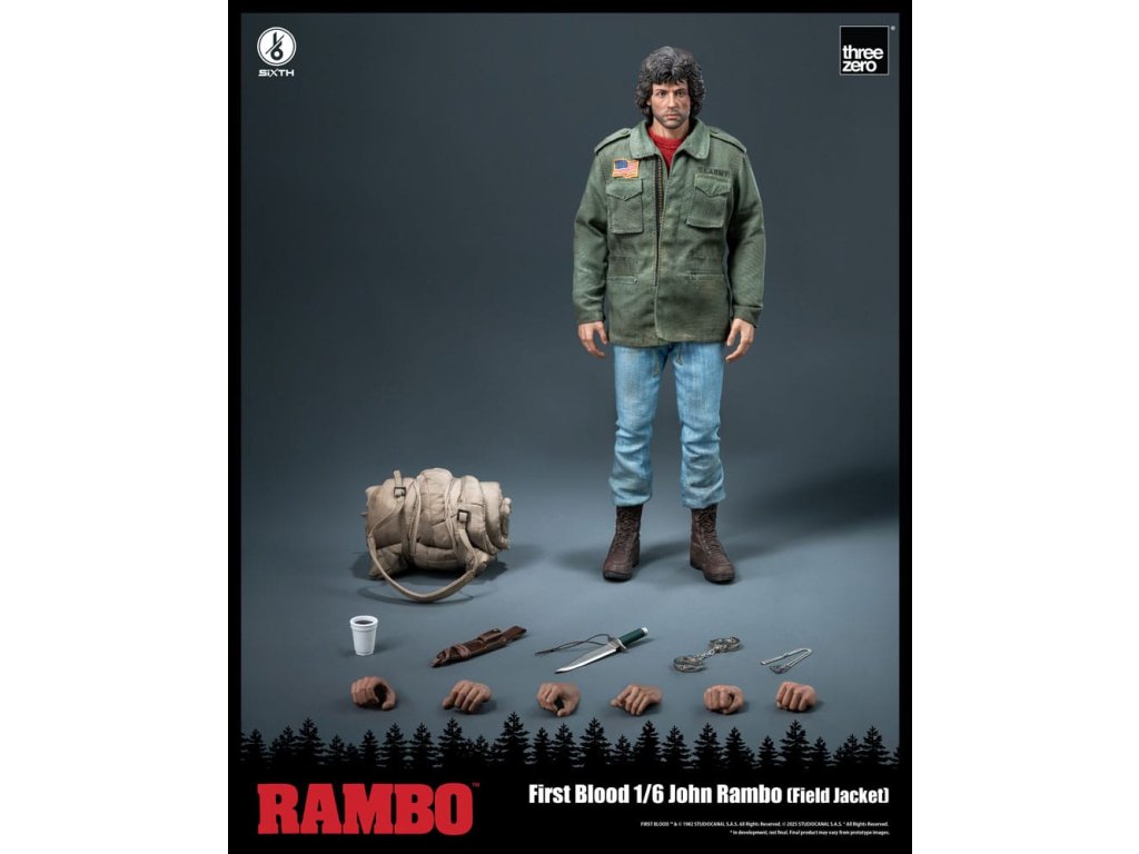 Zberateľská figúrka "Rambo: First Blood - 1/6 John Rambo (Field Jacket)" je vysoká približne 30,8 cm a má plne pohyblivé telo. Presne predstavuje postavu, ako bola zobrazená vo filme "Prvá krv" z roku 1982. Figúrka je oblečená v jeho ikonickej, filmovo presnej poľnej bunde M65, obnosenom červenom tričku s okrúhlym výstrihom, drsných džínsoch a vojenských topánkach. Súčasťou sú doplnky, ako napríklad nôž na prežitie v pošve, spací vak a hrnček na kávu, ktoré verne stvárňujú potreby, ktoré Johnovi Rambovi pomáhajú prežiť neúprosné prenasledovanie. Vlastnosti.8 inches tall - Head sculpt carefully captures the essence of John Rambo - Exclusive clothing and appearance Costume: - 1 M-65 field jacket - 1 red sweatshirt - 1 belt - 1 pair of jeans - 1 pair of military boots Accessory: - 1 identifikačná visačka - 1 hrnček na kávu - 1 pár pút - 1 nôž na prežitie s puzdrom - 1 spací vak - 4 páry vymeniteľných rúk: 1 pár pästí, 1 pár uvoľnených rúk, 1 pár rúk na držanie noža, 1 pár rúk na držanie príslušenstva.Dodatočné parametre