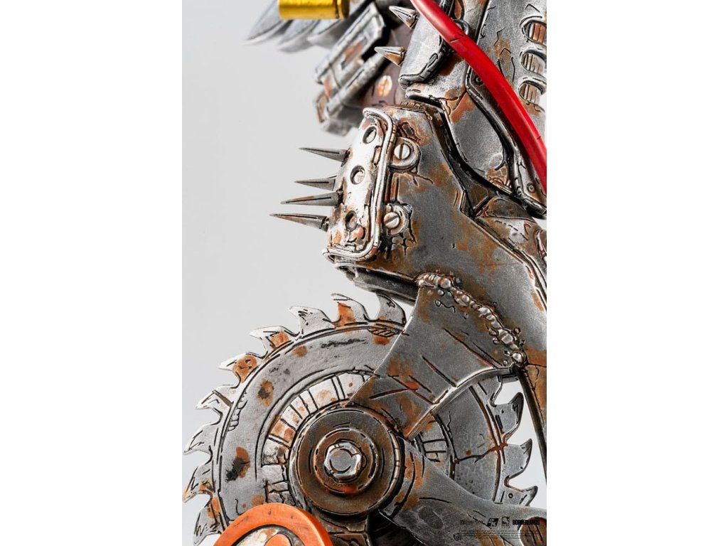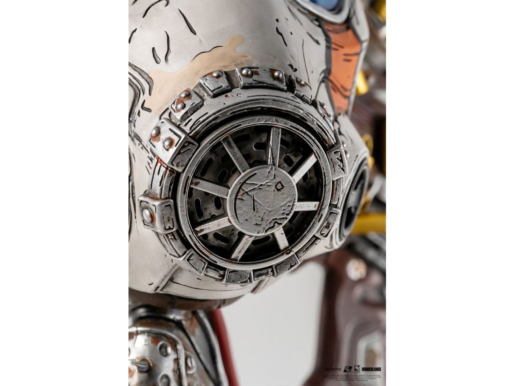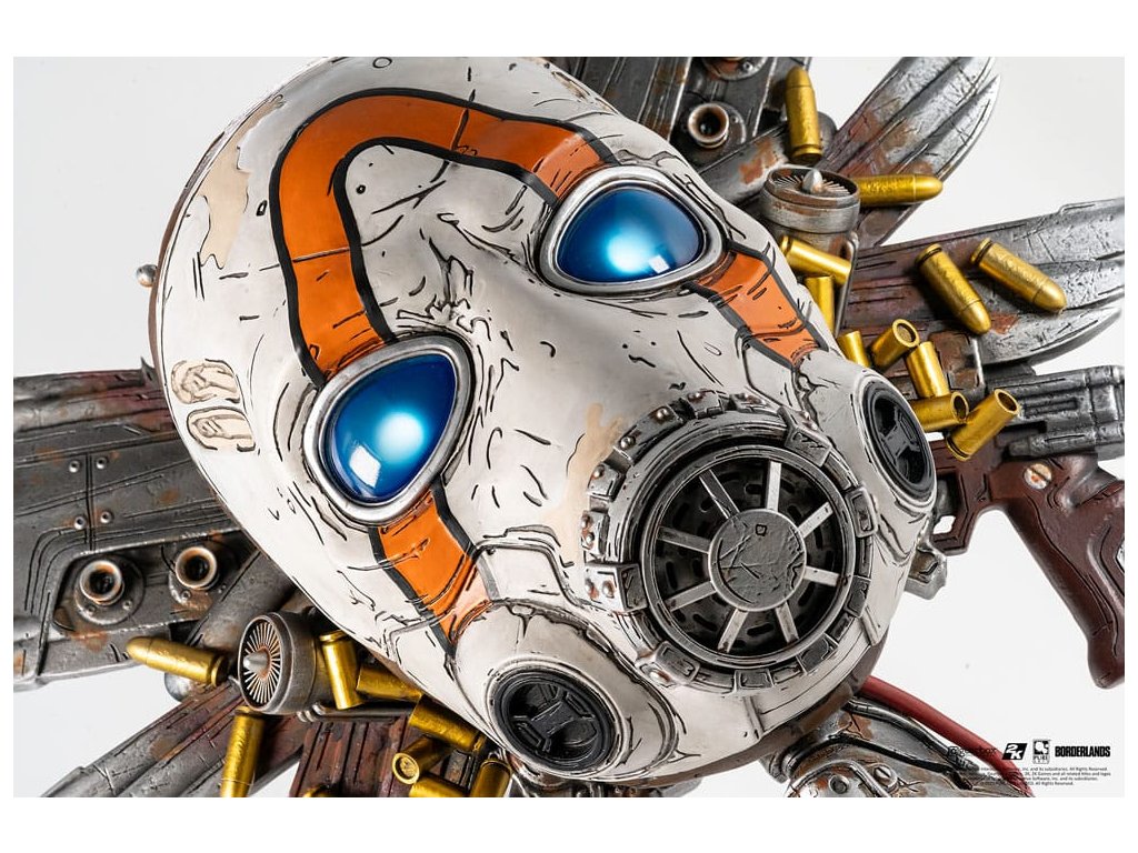"Keď sa na teba pozerám, pozri sa mi do očí." Preneste si svet Pandory domov s umeleckou maskou Psycho Bandit z hry Borderlands! Táto maska v mierke 1:1 s očami osvetlenými LED diódami, voľne rotujúcim hrdzavým podstavcom Buzz Axe a chaotickou explóziou zbraní, munície a motorizovaných strojov je svätyňou chaosu. VLASTNOSTI VÝROBKU - Hyper-detailná umelecká maska Psycho Bandit z Borderlands - Oči podsvietené LED diódami - Vysoko detailný voľne rotujúci hrdzavý podstavec Buzz Axe - Limitovaná edícia, individuálne číslovaná PODROBNOSTI O VÝROBKU - Licencia od 2K Games - Mierka: 1/1 - Veľkosť nákladu: 1250 - Materiál: PolyresinDodatočné parametre