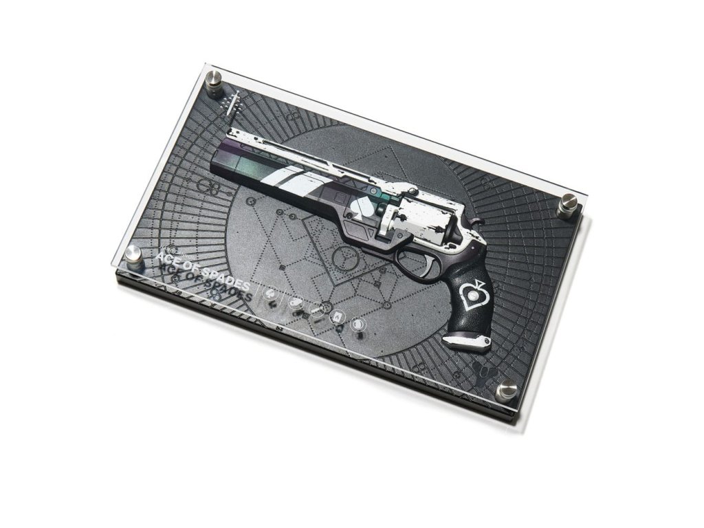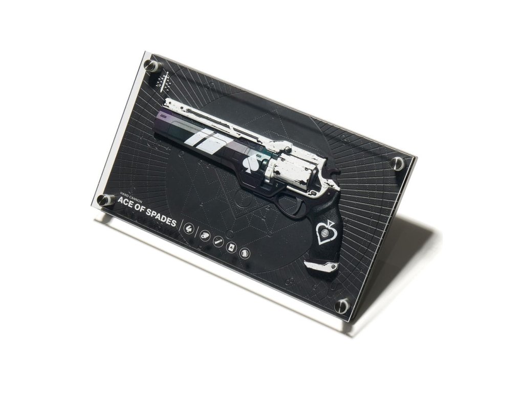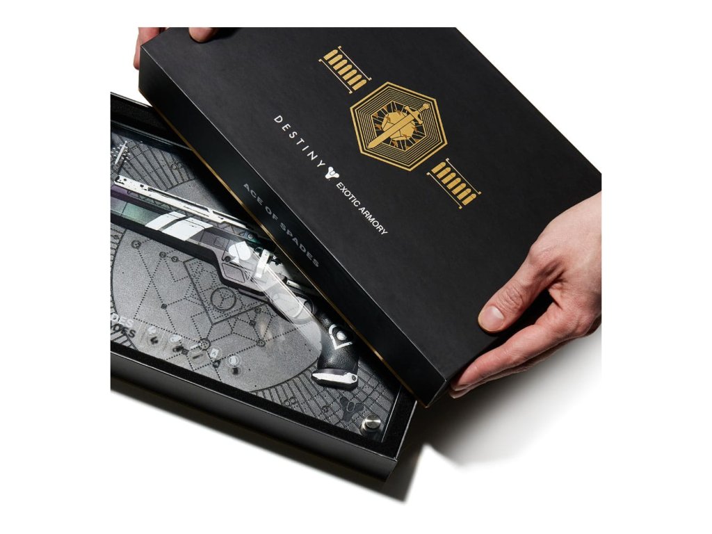 Numskull Designs je hrdý na svoje partnerstvo so spoločnosťou Bungie a predstavuje úžasnú repliku exotickej zbrane Ace of Spades. Tento exotický ručný kanón, podpísaný vodcom Vanguard Hunterom Cayde-6, bol vyrobený z vysokokvalitných materiálov s dôkladným dôrazom na detail. Numskull Designs úzko spolupracoval so spoločnosťou Bungie, aby replika čo najviac zodpovedala hernému modelu. Medzi detaily patrí dúhová povrchová úprava, efekty starnutia a symboly a postavy hrajúce pikové eso. So šírkou dvanásť palcov a výškou šesť palcov bude táto prémiová replika hrdo stáť kdekoľvek sa ju rozhodnete vystaviť - na stole, na polici alebo dokonca na stene - a určite urobí dojem na každého, kto ju uvidí, čo z nej robí povinný zberateľský kúsok pre každého fanúšika Destiny. - Official Destiny product - Designed and manufactured by Numskull Designs in collaboration with Bungie - First release in the Destiny Exotic Armory Collection - Highly detailed ABS replica of the exotic Cayde-6, Ace of Spades weapon - Presented in a premium collector's box with UV accents in place and adorned with a gold print of the Monument to Lost Lights logo - Can be placed on a table, shelf or wall - Dimensions.7 (17,1 cm) x V: 6,7 (17,1 cm) - Obrázok prototypu. Konečná verzia sa môže líšiť.Dodatočné parametre