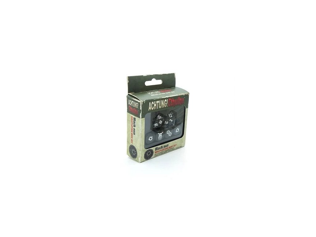 Sada kociek pre rolovú hru Achtung! Cthulhu 2d20 obsahuje 2 20-stranné a 4 6-stranné kocky čiernej farby s bielymi číslami a symbolmi. Každá z kociek má jednu stranu so symbolom Tajnej vojny. Skvelý doplnok pre RPG hru kombinujúcu lovecraftovský horor a prostredie druhej svetovej vojny.