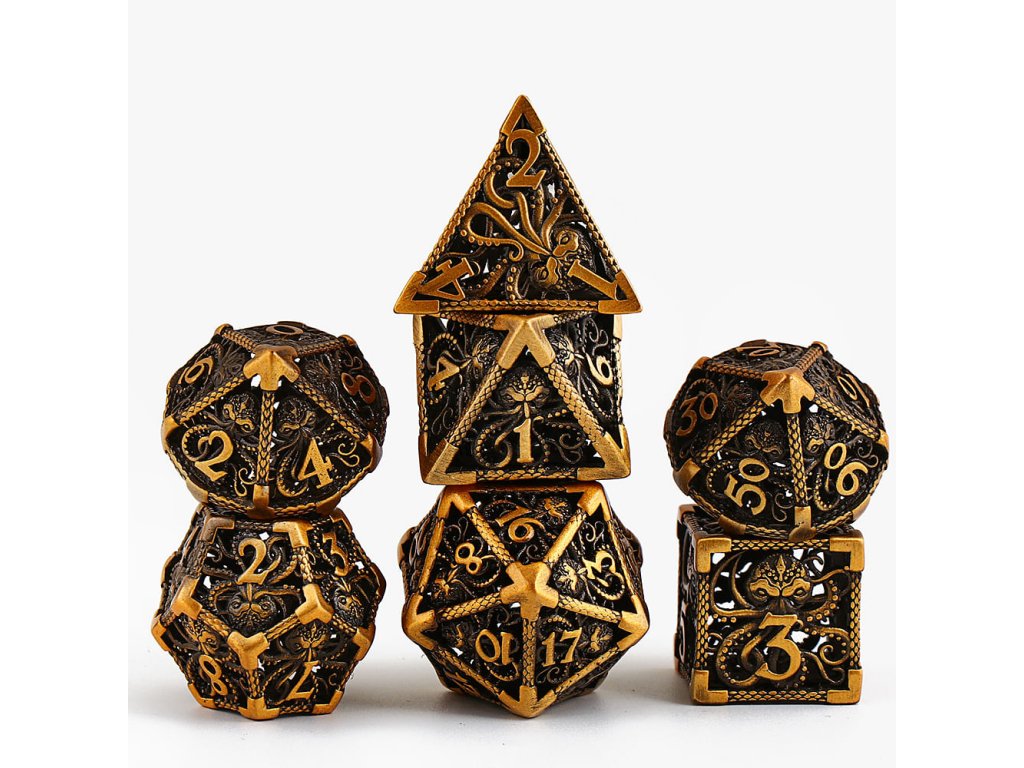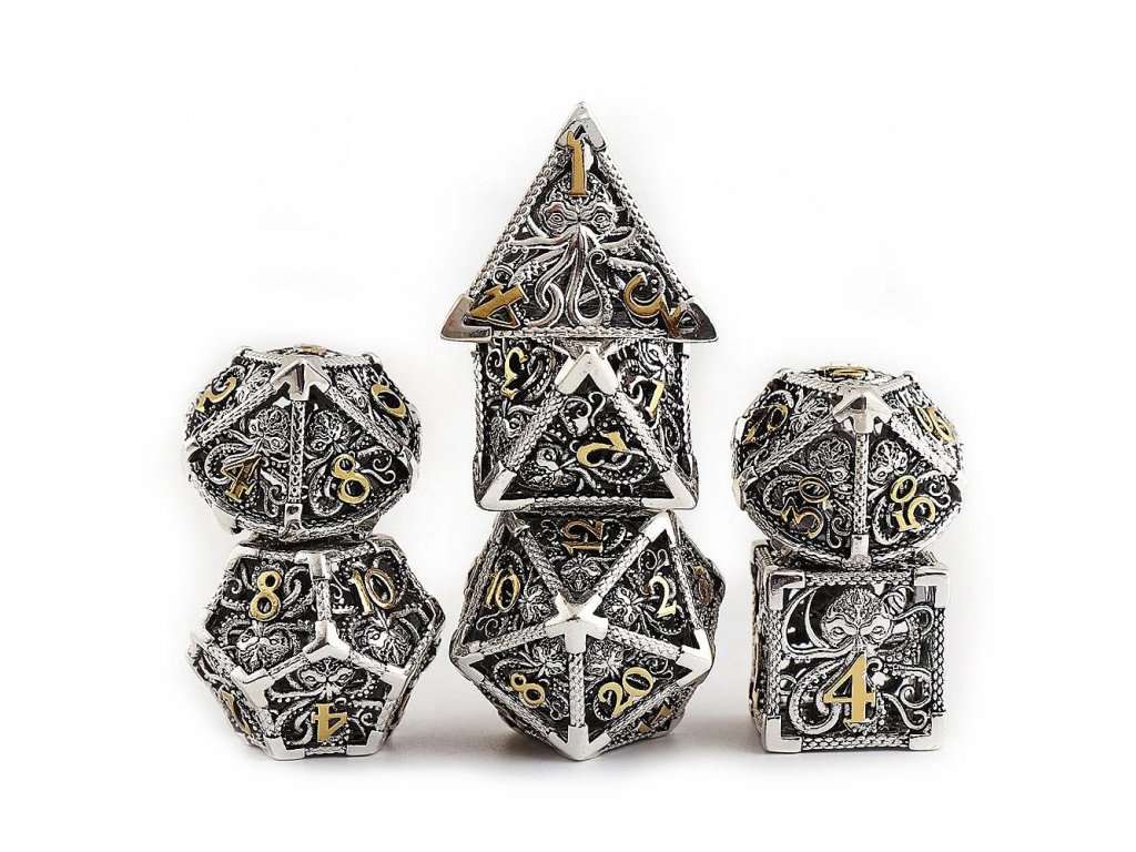 Sada dutých kovových kociek s patinou a motívom príšery a jedného z Prastarých - Cthulhu. K6 má hranu 1,8 cm. Sada obsahuje sedem kociek: štvorkovú, šesťkovú, osemkovú, desaťkovú, dvanásťkovú, dvadsaťkovú a percentovú.Buďte prvý, kto napíše príspevok k tejto položke.