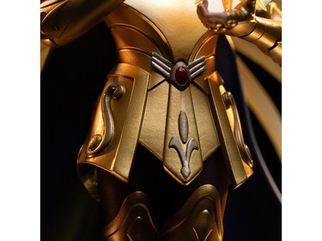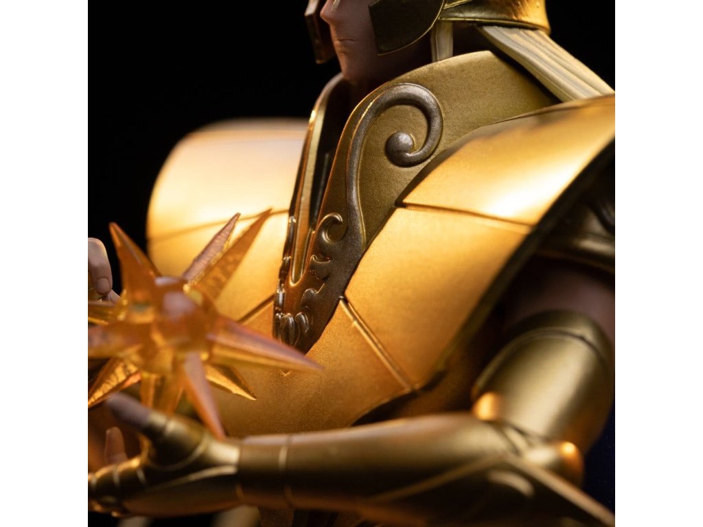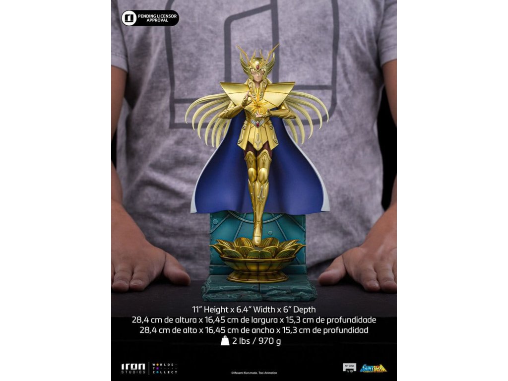 Táto socha, pokojná, osvietená a s neprekonateľnou duchovnou silou, oživuje Pannu Šaku v nádhernej a kontemplatívnej podobe. Tento zberateľský kúsok, inšpirovaný jeho ikonickou úlohou vo filme Saint Seiya, zobrazuje zlatého svätca Panny ako človeka najbližšieho bohom, vyjadrujúceho múdrosť, vnútornú rovnováhu a ohromujúcu kozmickú silu. táto socha v mierke 1/10, vyrobená spoločnosťou Iron Studios, sa vyznačuje výnimočným sochárskym umením a dôkladnou ručne maľovanou povrchovou úpravou. Od zložitých detailov zlatého odevu Panny až po pokojný, meditatívny postoj a starostlivo navrhnutý podstavec - každý prvok je vytvorený tak, aby vyjadroval transcendentnosť, eleganciu a absolútnu kontrolu nad Cosmom, čoho výsledkom je vizuálne vybrúsený a mocný exponát. v mierke 1:10 táto socha pôsobí dôstojne a autoritatívne a dokonale dopĺňa ostatné zlaté sväté v kolekcii Saint Seiya. Táto socha, navrhnutá tak, aby stelesňovala osvietenie, disciplínu a božskú moc, je nevyhnutným doplnkom pre fanúšikov a zberateľov, ktorí oceňujú ikonické postavy reprezentované špičkovým remeselným spracovaním a hlbokou úctou k pôvodnému anime. táto oficiálne licencovaná socha "Saint Seiya" je vyrobená z polyresinu. Socha v mierke 1/10 má rozmery približne 28,4 x 16,5 x 15,3 cm: Alternatívna hlava.Dodatočné parametre