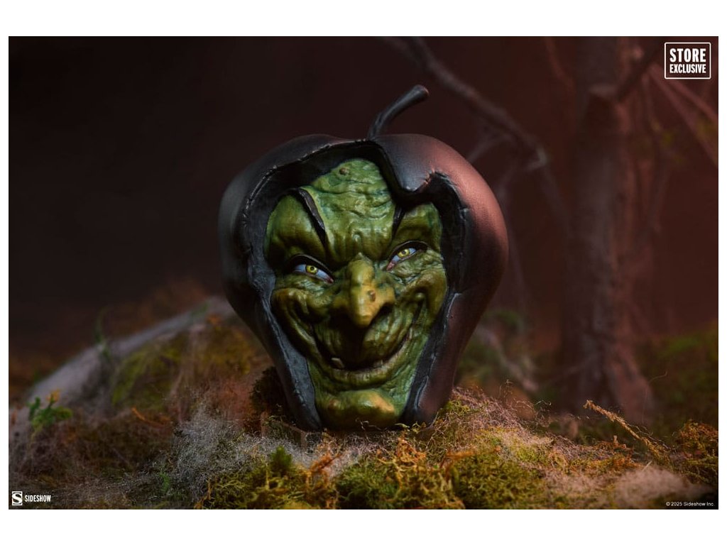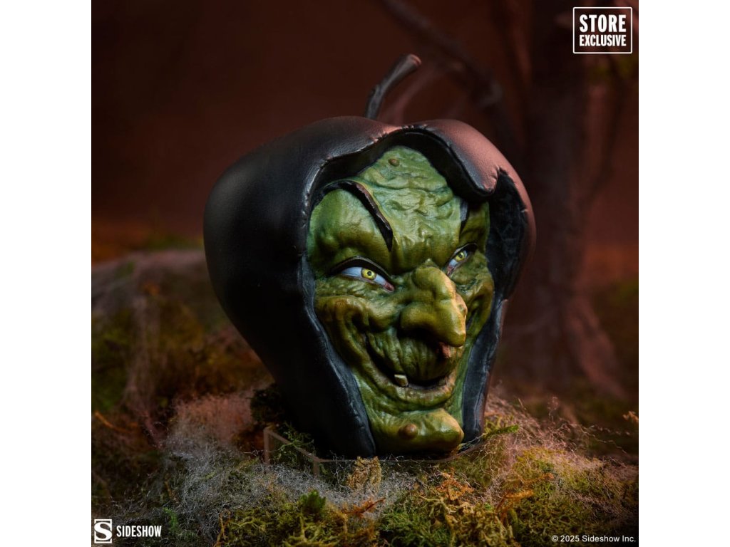 Vyberte si svoj jed... Sideshow predstavuje repliku čarodejníckych jabĺk. Tento zlý hororový zberateľský kúsok prináša na vaše police desivú zábavu. Táto bradavičnatá kráska, inšpirovaná klasickým červeným ovocím, ktoré používame na naše sošky a figúrky, už čaká na lepšie časy alebo prekliatie. Ste pripravení nechať sa strhnúť jej kúzlom? Táto replika čarodejníckeho jablka meria na výšku 10,4 cm a vyznačuje sa takmer animovaným vzhľadom so zvráskaveným zeleným telom, ktoré vykúka z jej tmavého plášťa. Dobre sa kombinuje s inými replikami alebo dokonca so skutočnými jablkami - halloweenskym trikom, pri ktorom sa všetci vaši hostia budú pýtať, čo to má byť? Tak neváhajte a urobte to! Prineste si domov repliku čarodejníckeho jablka ešte dnes. táto zelená verzia čarodejníckeho jablka je k dispozícii exkluzívne u vášho miestneho predajcu Sideshow Rozmery: 10,4 x 8,1 x 7,6 cm.Dodatočné parametre