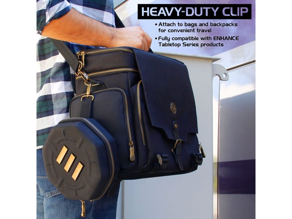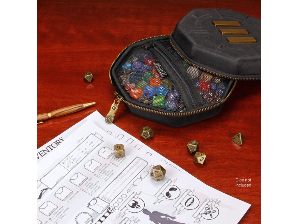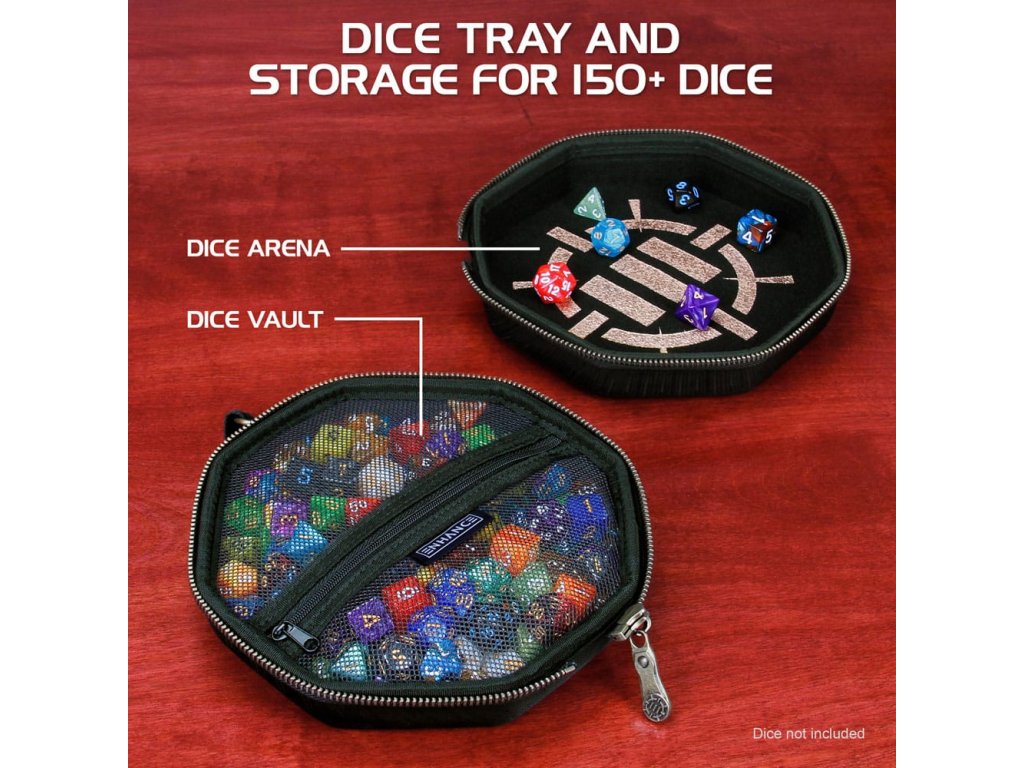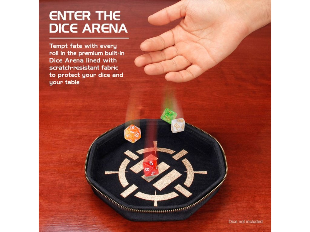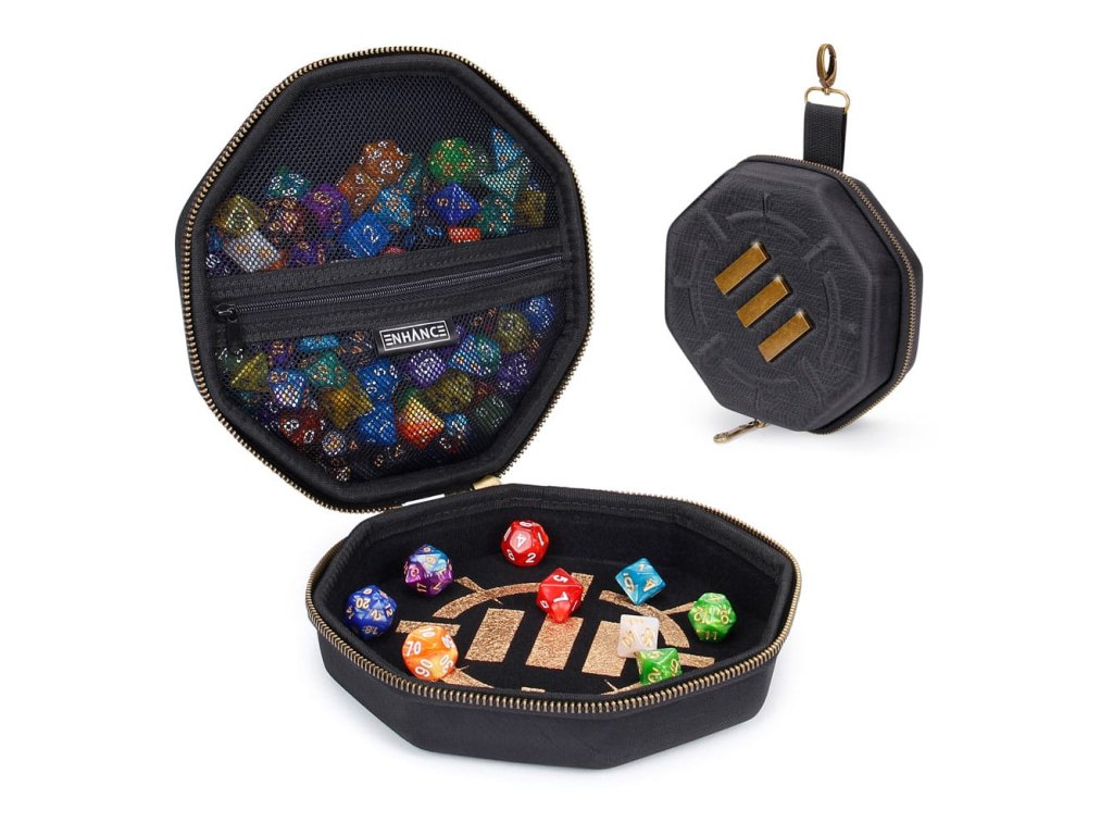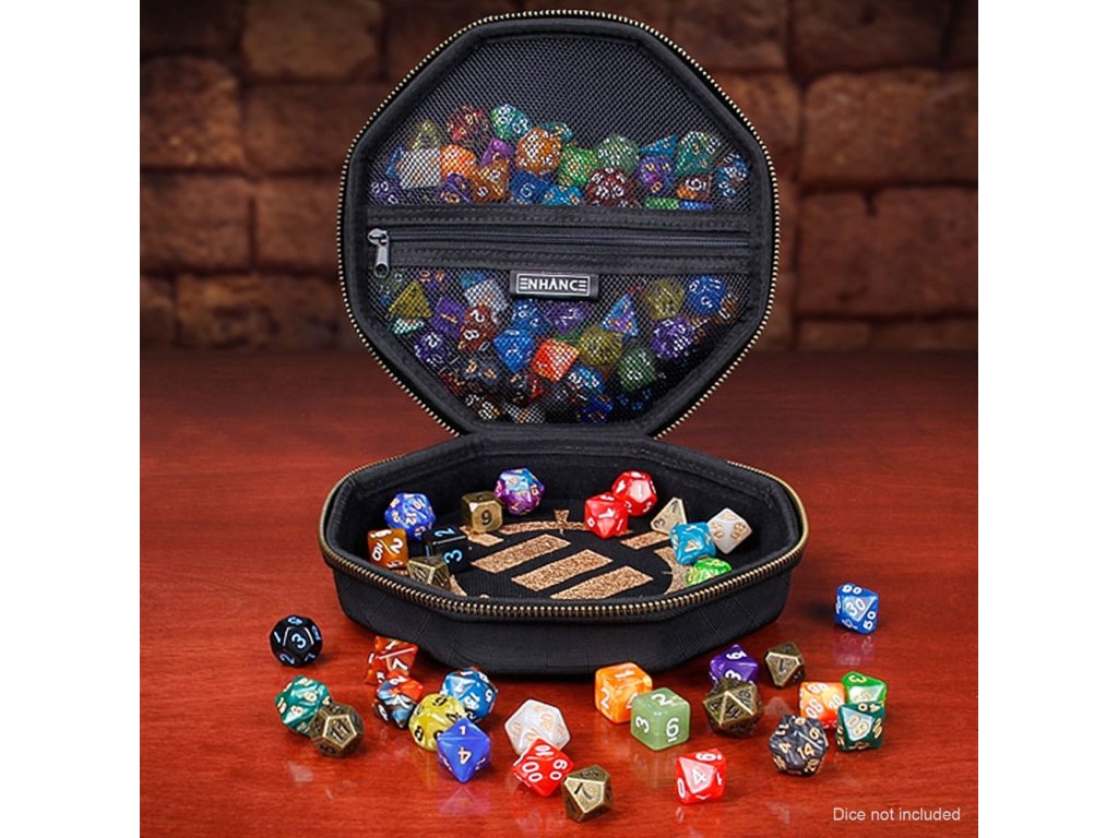 Stolová skrinka na kocky ENHANCE je vybavená robustnými zipsami, podšívkou odolnou proti poškriabaniu a veľkým zásobníkom na kocky s mäkkým povrchom. Skrinka na kocky ENHANCE je dokonalým doplnkom do vašej zbierky príslušenstva na cestovanie s hrami RPG. Sú to vlastne dva produkty v jednom, pričom v jednej časti je bezpečne uložených až 150 kociek a druhá časť slúži ako veľký zásobník na kocky, ktorý sa dá prenášať okolo herného stola. Odolné, vystužené puzdro chráni vaše kocky pred opotrebovaním, zatiaľ čo vnútro s mäkkou výstelkou chráni všetky vaše kocky pred poškodením a nepríjemnými škrabancami. Má tiež kovový úchyt na pripevnenie k batohom a taškám. Naše cestovné puzdro na kocky sa skvele hodí na hry Dungeons and Dragons, stolové hry a rôzne iné stolové RPG hry. Nahraďte svoje malé tašky na dnd kocky a neprehľadné zásobníky na kocky puzdrom na kocky ENHANCE, ktoré je riešením pre všetkých hráčov RPG. Vonkajšie rozmery: 7,75 x 7,75 x 3 palce. Vnútorné rozmery: 6,75 x 6,75 x 1,25 palca.Dodatočné parametre