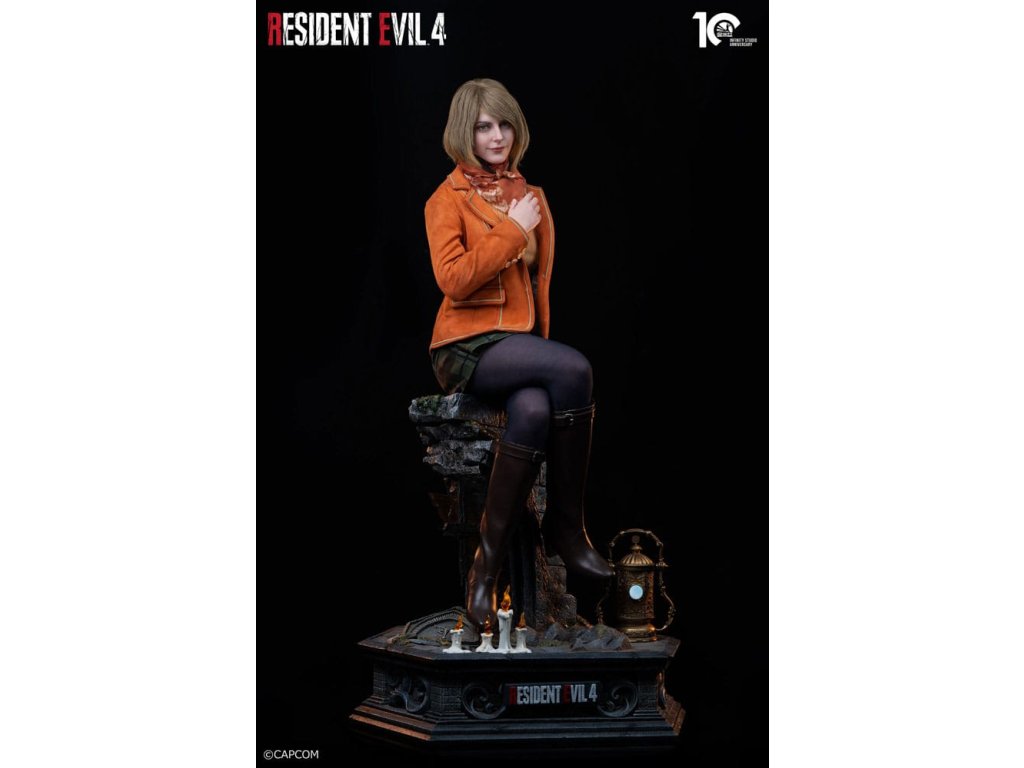Ashley, dcéra amerického prezidenta Grahama, bola unesená na ceste domov z vysokej školy a agent Leon S. Kennedy bol vyslaný, aby ju zachránil. Pri tomto brutálnom úteku sa z chráneného cieľa stala spoľahlivá partnerka, ktorá bojuje po Leonovom boku. Štúdio Infinity s dôkladným remeselným spracovaním zachytilo Ashleyin rozhodujúci okamih tým, že reprodukovalo a prezentovalo jej klasické CG herné sedenie. Rozmery: 37 x 48 x 84 cm Materiál: lekársky platinový silikón, polyston, vlákno, látka, PVC. Vyžaduje 2 x AAA a 2 x LR44 batérie (nie sú súčasťou balenia). Limitovaná edícia 299 kusov na celom svete.Dodatočné parametre
