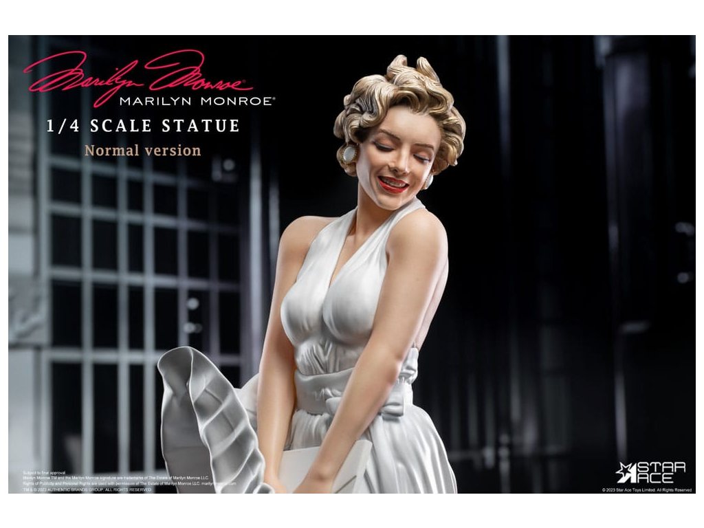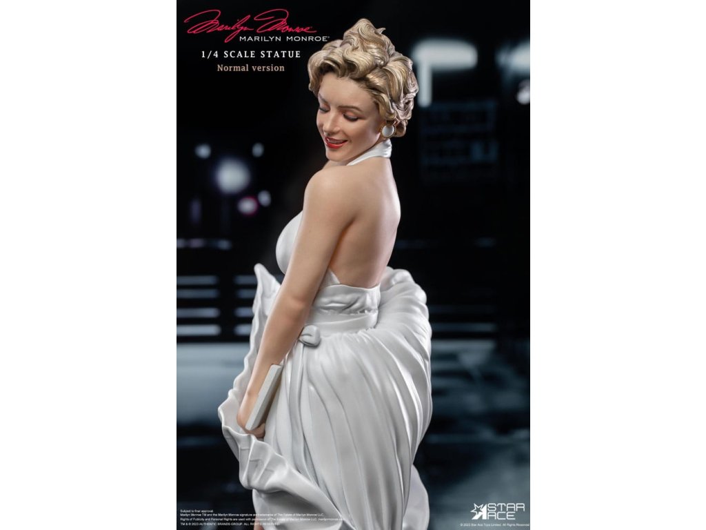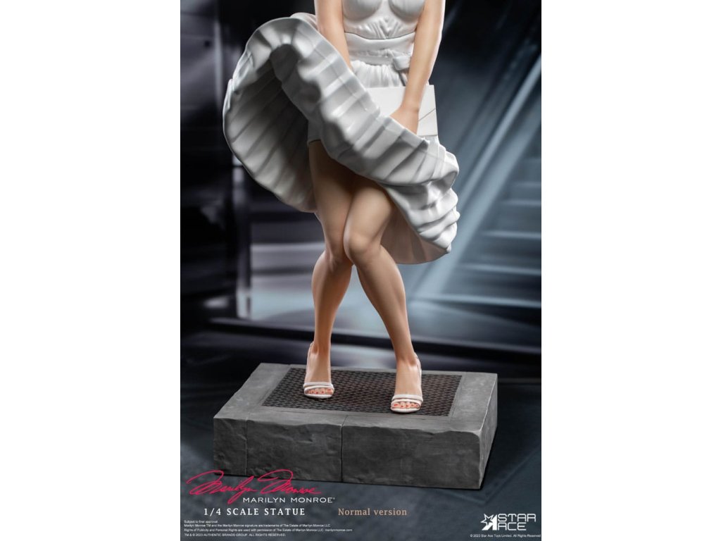 Predstavujeme sošku Marilyn Monroe v mierke 1/4 od spoločnosti Star Ace v jej ikonických bielych šatách! Zachyťte večný pôvab zlatej éry Hollywoodu s našou nádhernou soškou v mierke 1/4, ktorá zobrazuje legendárnu Marilyn Monroe v nezabudnuteľnom okamihu nad metrom. Tento úžasný kúsok vzdáva hold tejto ikonickej scéne, pričom Marilynine biele šaty sa vznášajú vo veternom vzduchu a vytvárajú nezabudnuteľný filmový moment. Naša socha v mierke 1/4, vyrobená s výnimočným dôrazom na detail, sa môže pochváliť autentickou podobou legendárnej Marilyn Monroe. Zachytená je každá nuansa jej elegancie, šarmu a pôvabu, čo zaručuje verné zobrazenie milovanej hollywoodskej ikony. Socha je starostlivo vyrobená z vysokokvalitného polyresinu, čo zaručuje odolnosť a dokonalú povrchovú úpravu. Jemné detaily Marilyniných šiat, vlasov a čŕt tváre sú nádherne vyjadrené, čo z nej robí nevyhnutný kúsok pre zberateľov a fanúšikov. V mierke 1/4 a s pôsobivou výškou 50 cm bude táto socha pútať pozornosť a obdiv. Hrdo ju vystavte ako ústredný prvok svojej zbierky a predveďte večnú krásu Marilyn Monroe. Podstavec sochy kopíruje ikonickú mriežku metra, čím poskytuje kontextuálne a vizuálne pútavé pozadie pre Marilyninu očarujúcu pózu. Pozornosť venovaná detailom sa rozširuje aj na okolie a vytvára scénu, ktorá vás prenesie do pôvabu klasického Hollywoodu. Nenechajte si ujsť príležitosť vlastniť kúsok filmovej histórie. Prineste si domov sošku Marilyn Monroe v mierke 1/4 od spoločnosti Star Ace a prežite kúzlo tejto ikonickej hviezdy ešte dnes! .Dodatočné parametre