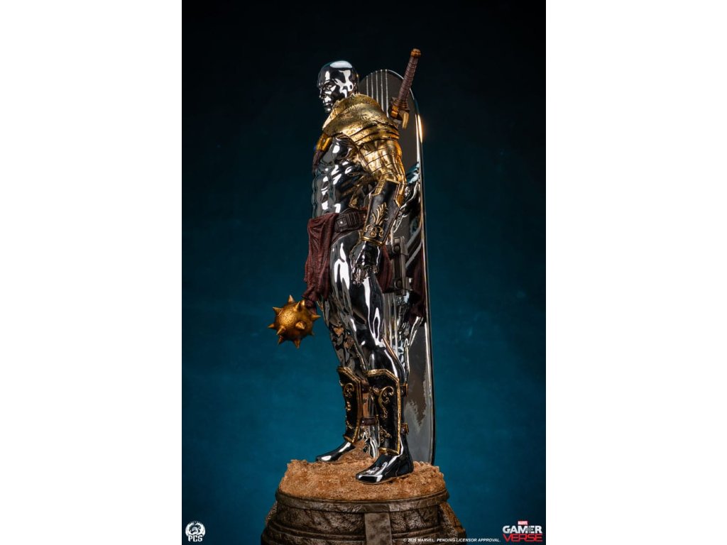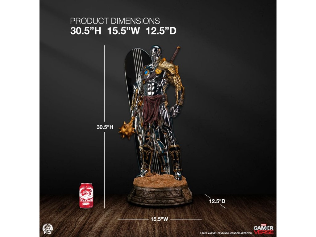 Spoločnosť Premium Collectibles s hrdosťou predstavuje Silver Surfera - sošku v mierke 1:3 inšpirovanú hviezdnym poslom z gladiátorského variantu mimoriadne populárnej mobilnej hry Marvel Snap! Tento ohromujúci zberateľský predmet, ktorý je vysoký impozantných 77 cm, zachytáva nepohnutú intenzitu Silvera Surfera ozbrojeného proti svojej vôli (vďaka modrému ovládaciemu disku pripevnenému na hrudi) v bojových jamách Sakaaru. Tento populárny predstaviteľ klasickej postavy Marvelu je odetý do rôznorodého brnenia a zbraní zlepených z improvizovaného arzenálu arény. Hrubý bronzový náprsný pancier na jeho ľavom ramene je pokrytý poškodením a pripája sa k sérii popruhov, ktoré slúžia aj ako pošva pre obrovský meč na jeho chrbte. Jeho zdobené rukavice a chrániče holení spolu s tehlovočervenou zásterou dodávajú tomuto galaktickému cestovateľovi výrazne rímsky vzhľad, ktorý sa hodí do obrovskej arény, v ktorej je rukojemníkom. Samotný Silver Surfer je od hlavy až po päty pokrytý oslnivým, reflexným chrómovým povlakom. Táto vrstva ešte viac vynikne na pozadí opotrebovaného brnenia a zbraní, ktorými je ozdobený. V pravej ruke drží palcát s hrotmi, zatiaľ čo za ním z podstavca, ktorý je vytvarovaný s realistickou textúrou piesku, aby navodzoval dojem drsného terénu, vyčnieva jeho ikonické surfovacie prkno premenené na improvizovaný štít. Vydajte sa na cestu za dobrodružstvom a doplňte svoju zbierku Marvel Gamerverse soškou Silver Surfera od PCS v mierke 1:3 ešte dnes! Limitovaná edícia: 250 kusov Veľkosť: 77 x 39 x 32 cmDodatočné parametre