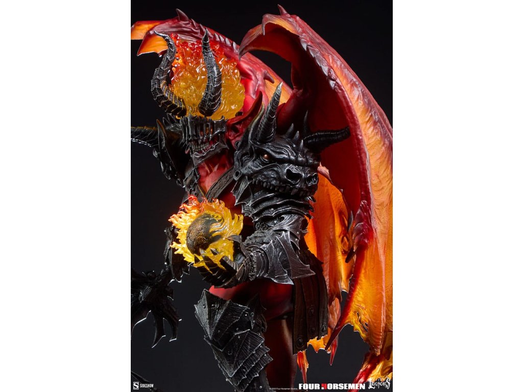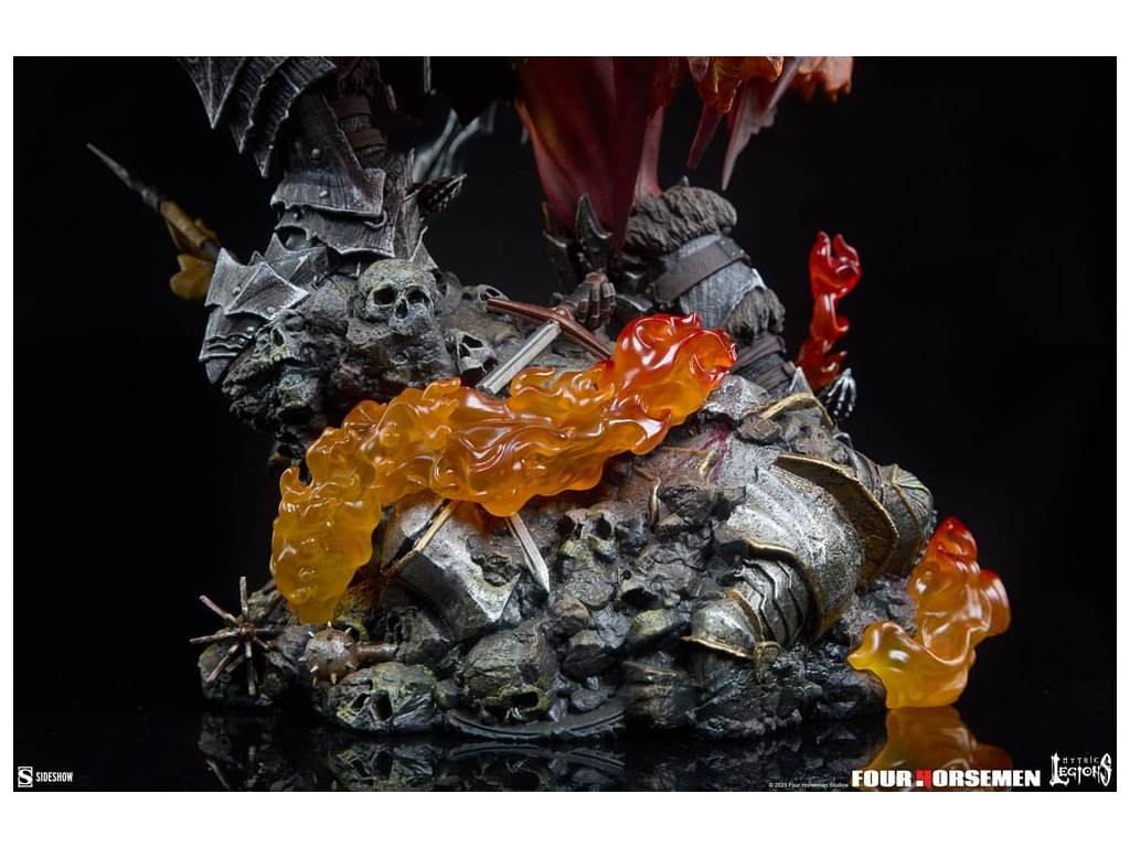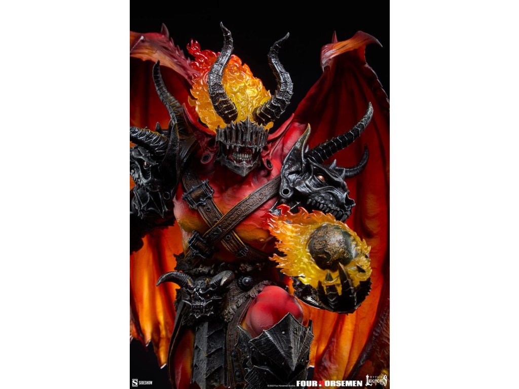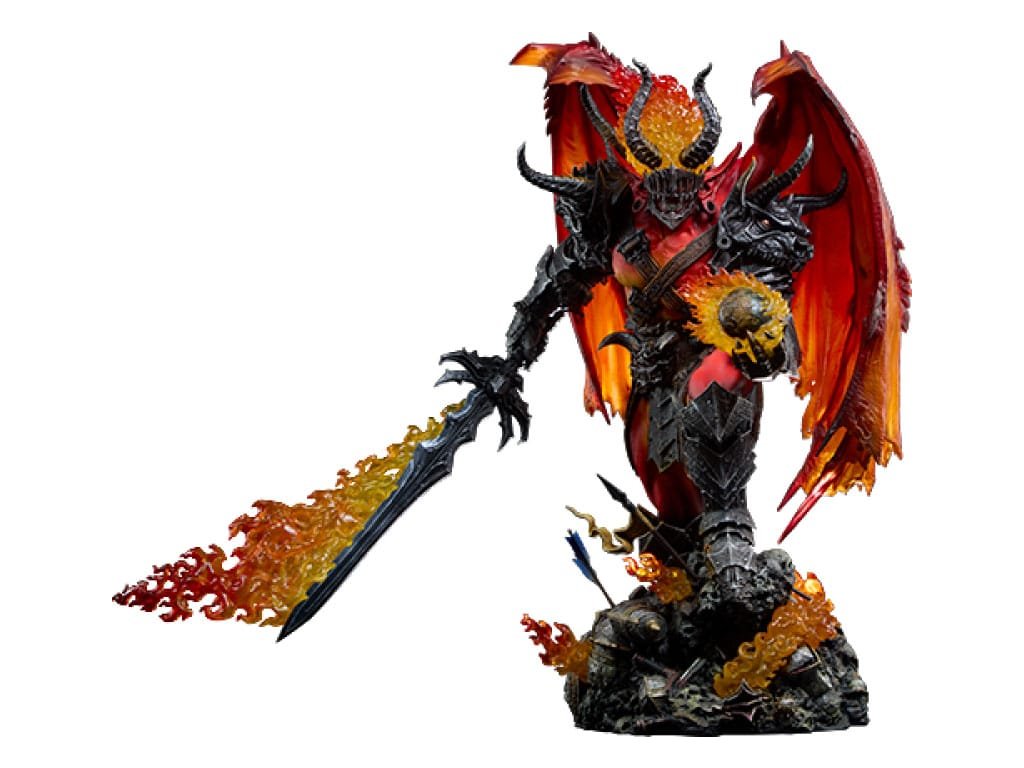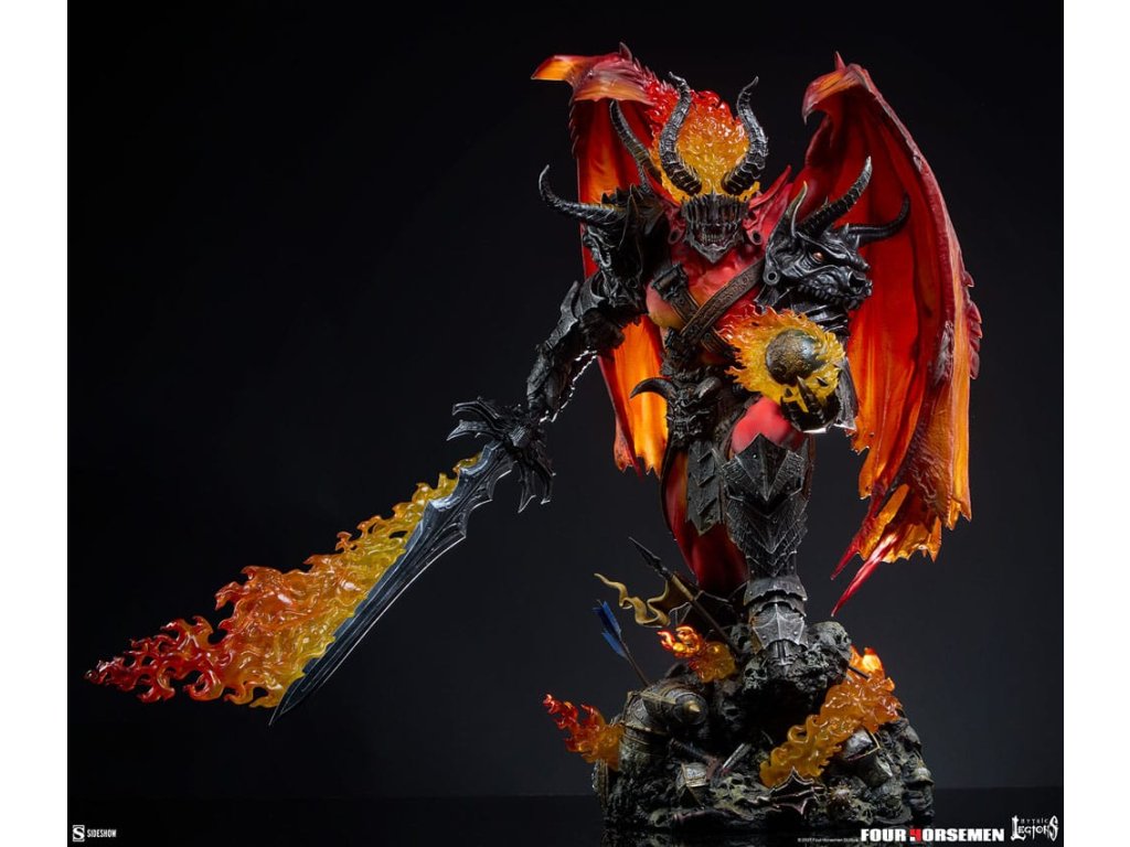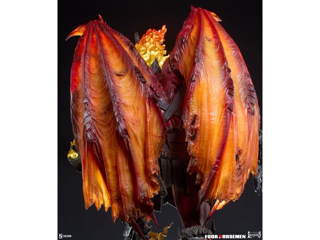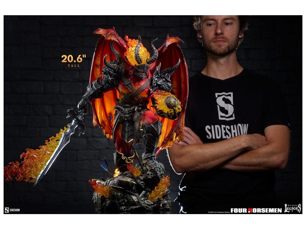 Spoločnosť Sideshow predstavuje sošku Arethyr: War, kompletne vymodelovanú zberateľskú figúrku inšpirovanú desivou akčnou postavou z hry Mythic Legions od štúdia Four Horsemen Studios. Arethyr, ktorý stelesňuje samotnú vojnu, vedie légiu brutálnych bojovníkov. Jeho mystická zbraň, Aetherblade, mu jasne žiari po boku, keď sa snaží spojiť svojich zlých súrodencov a spustošiť Mythoss ohňom a zúrivosťou. Socha Arethyr: Vojna má rozmery 20,6" na výšku x 23,44" na šírku x 13,3" na hĺbku a zobrazuje tohto pekelníka túžiaceho po boji. Tento bojovník označuje plamenný meč Aetherblade, ako sa ženie cez pole plné rozbitých zbraní a padlých bojovníkov. Jeho diabolská podoba vyžaruje brutálnu silu s koženými krídlami pripravenými roztiahnuť sa. Arethyr je chránený zlomyseľným čiernym brnením ukovaným v bezohľadnom ohni konfliktu, s obludnými rohatými chráničmi na každom ramene a zodpovedajúcim zdobeným opaskom cez pás. Jeho zachmúrený portrét chráni maska v klietke, korunovaná plamenným ohnivým jazykom. Prisaháš svoj meč na jeho bezcitnú vec? Prineste si domov sochu Arethyr: Vojna dnes. Rozmery: 53 x 60 x 34 cm.Dodatočné parametre