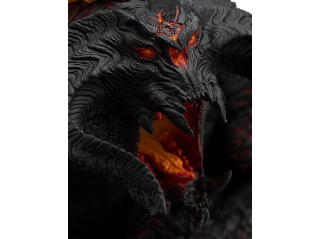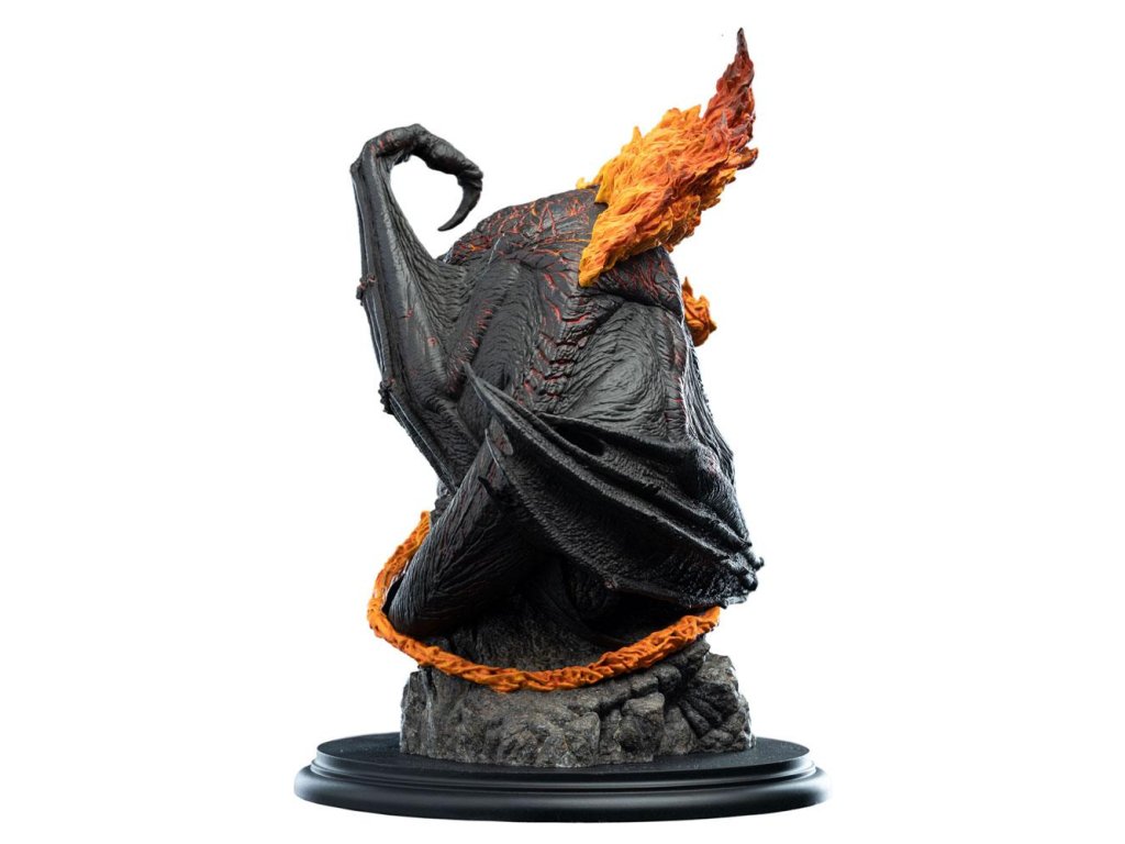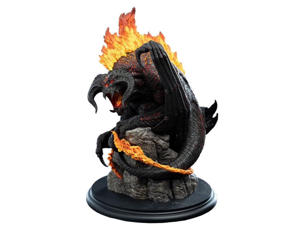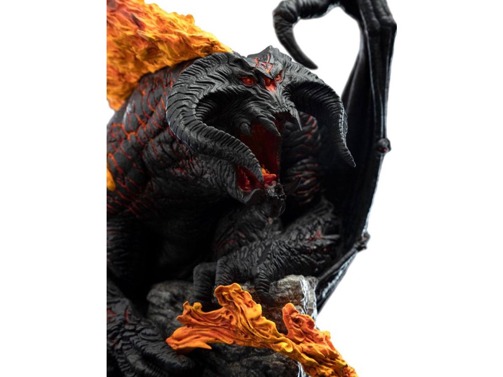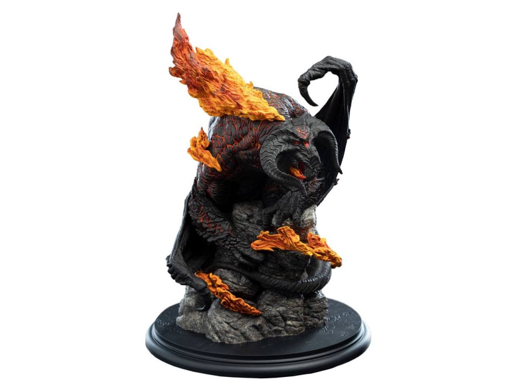 Zo všetkých hrôz, ktorým Spoločenstvo prsteňa na svojej ceste čelilo, sa žiadna nevyrovnala Balrogovi. Toto stvorenie, démon plameňov a tieňov, ležalo nespočetné veky pochované v najhlbšej temnote ďaleko pod Mlžnými horami. Hlboko pod zemou, pri kopaní v bezslnečnej čiernej skale Mitrilu, trpaslíci vyrušili niečo, čo bolo bezpečne pochované od dávnych vekov, stvorenie nesmiernej hrôzy, pozostatok z čias bohov a obrov, stvorenie, aké už nikdy nemalo chodiť po Stredozemi a ktorému sa na svete len málokto vyrovná, Balroga z Morgothu. Balrogovi nemožno ublížiť žiadnym mečom ani zariadením trpasličej konštrukcie. Stovky Durinovho ľudu a samotný trpasličí kráľ padli pred touto príšerou, vtedy pomenovanou Durinova zlovôľa. Keď Spoločenstvo prsteňa hľadalo priechod pod Mlžnými horami, aby sa vyhlo pozornosti padlého čarodejníka Sarumana, bolo to proti vážnym obavám Čarodejníka v šedom, pretože Gandalf tušil, čo straší v tieňoch Morie. Bezpečný prechod im mohla zaistiť len skrytost, pretože ak by Balroga zalarmovali, Gandalf vedel, že ich útek bude možný len za cenu veľkých strát a on už nikdy neprejde dverami trpasličieho kráľovstva. Rozmery: 21 x 32 x 21 cm.Dodatočné parametre
