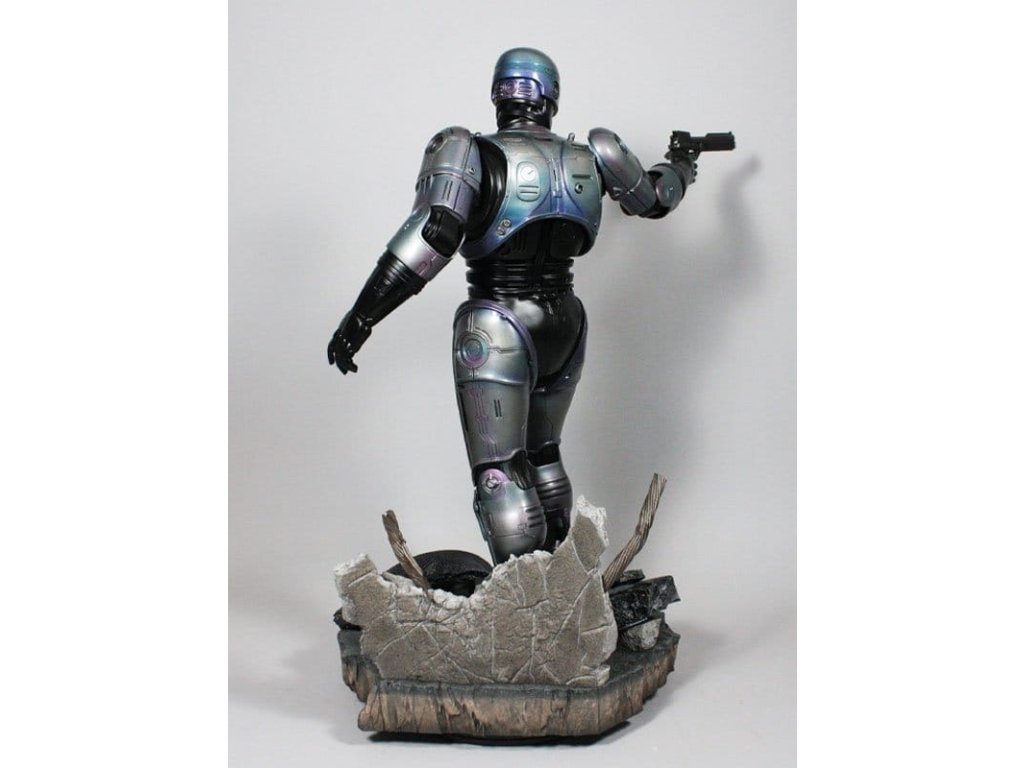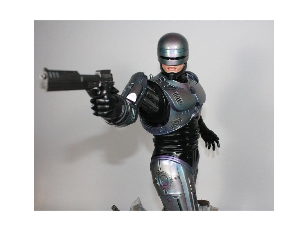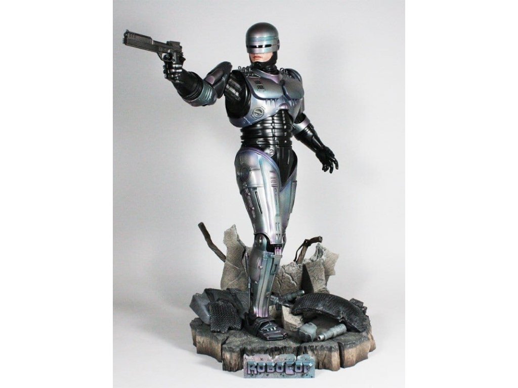 "Živý alebo mŕtvy, pôjdeš so mnou!" S hrdosťou vám predstavujeme našu oficiálne licencovanú sošku Robocopa v mierke 1:4! Táto detailne prepracovaná socha, ktorá je vysoká pôsobivých 21", dokonale zachytáva RoboCopa v jeho klasickej póze a stojí na vysoko detailnom podstavci s bojovou scénou vrátane fragmentov ED209! Na zachytenie jedinečnej farby jeho brnenia sme použili viacvrstvovú metalickú farbu, ktorá dokonale obnovuje jeho charakteristický strieborný, modrý a fialový lesk, ako ho vidíme vo filme. Rovnako ako všetky kúsky od Hollywood Collectibles je aj táto soška muzeálnej kvality vyrobená z ťažkého polyresinu. Každý kus je ručne opracovaný a potom individuálne ručne maľovaný, aby sa zachytili aj tie najmenšie detaily. Táto úžasná filmovo presná soška RoboCopa je dostupná v prísne limitovanej edícii 150 individuálne číslovaných kusov po celom svete. Ide o exkluzívnu edíciu HCG, ktorá sa dodáva s dodatočným názvom RoboCop, ktorý nadväzuje na dizajnové prvky podstavca sochy.Dodatočné parametre