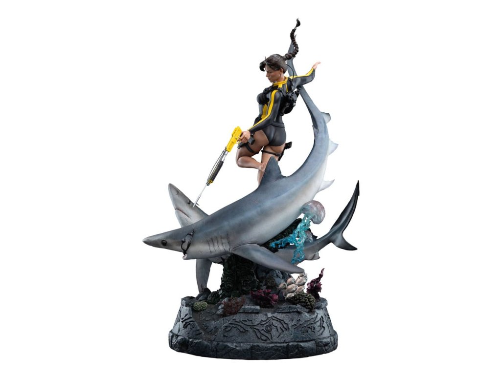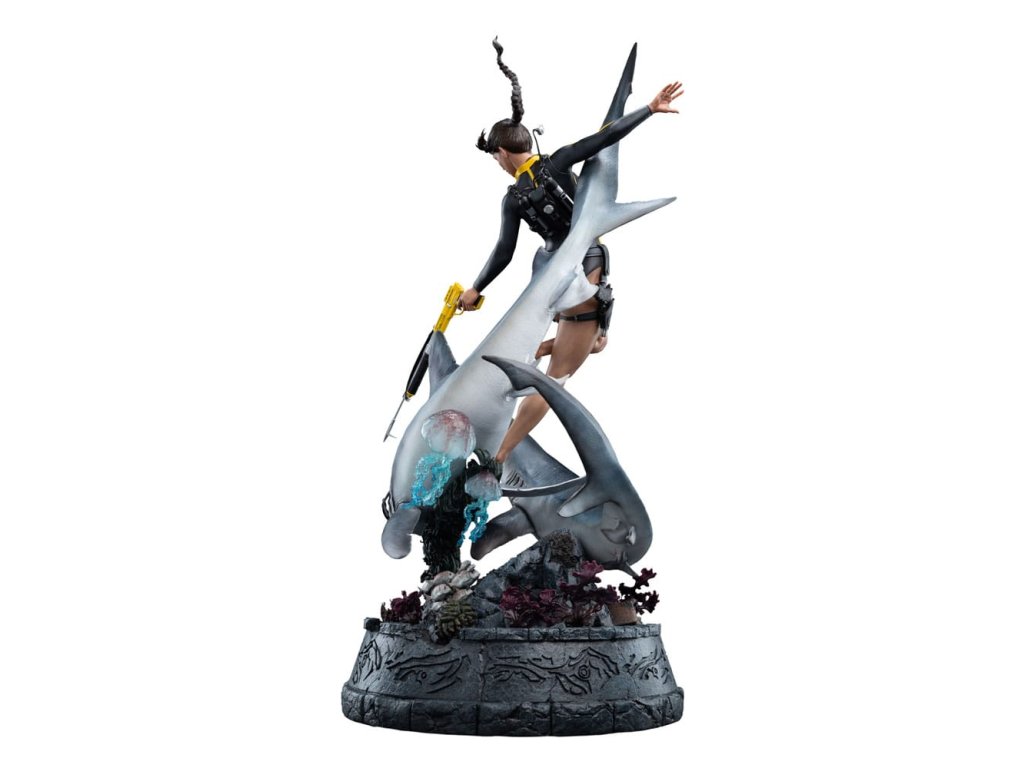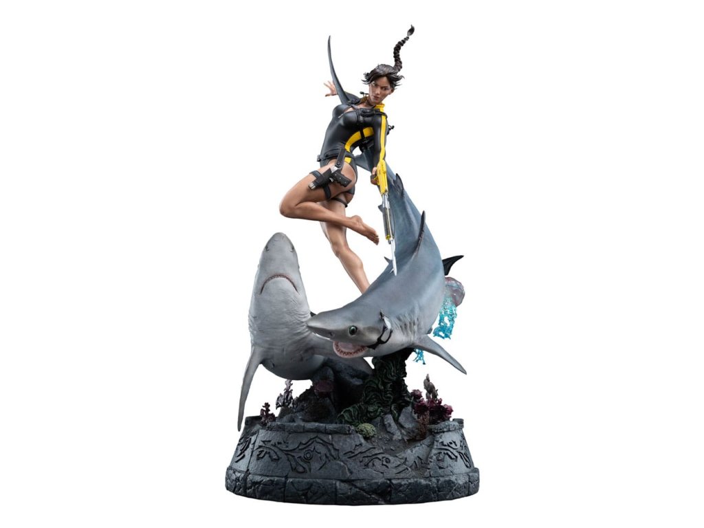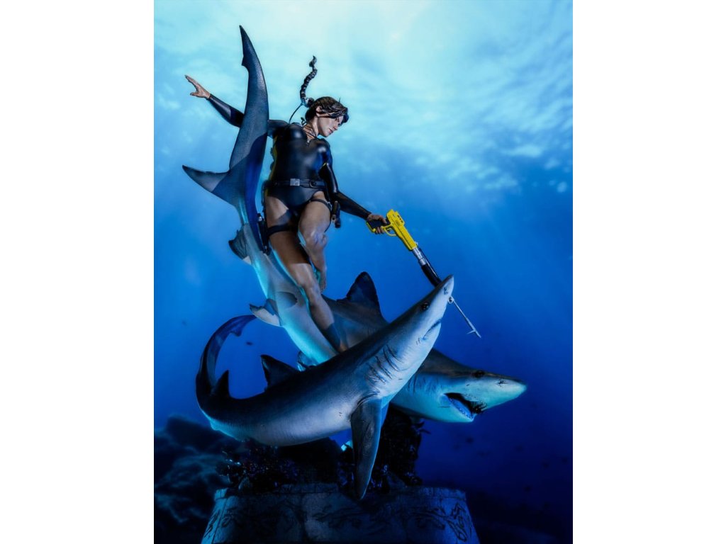 Oceán má svoje tajomstvá prísne ukryté, pochované pod storočiami soli a kameňa. Lara Croft sa však od neznámeho neodvracia, ale vrhá sa doň strmhlav. V tichých hlbinách, kde starobylé ruiny šepkajú o bohoch a mýtoch a temnotou sa potulujú dravce, pokračuje jej pátranie po Avalone. Čas, príliv a odliv ani strach ju nezastavia pred odhalením pravdy. táto soška Lary Croft: Soška Lara Craft: Hľadanie Avalonu je úchvatným vyobrazením jednej z najtrvalejších ikon herného sveta v mierke 1:4. Tento zberateľský kúsok, vyhotovený do najmenších detailov, zachytáva Laru tak, ako sa objavuje v hre Tomb Raider: Underworld, plne vybavenú v neoprénovom obleku a potápačskej výstroji, s harpúnou v ruke, obklopenú víriacim napätím hlbín.Od plynulého pohybu krúžiacich žralokov až po koralmi pokryté ruiny na morskom dne - každý prvok je starostlivo navrhnutý tak, aby evokoval nebezpečenstvo, krásu a mýtický rozsah Lařinej podmorskej výpravy. Medzi ruinami sa skrýva kŕdeľ rýb, ktorý sa prepletá cez rozpadávajúce sa skaly a dodáva scéne život a pohyb.Toto je hlbokomorská snímka Lary v jej najodvážnejšej podobe, medzi starovekými mýtmi a súčasným nebezpečenstvom, a zachytáva surovú podstatu jej odhodlania. Pre tých, ktorí ju sledovali na jej ceste cez rozpadajúce sa chrámy a potopené svety, je táto socha nevyhnutnou pamiatkou na kultové dobrodružstvo.- V mierke 1:4;- Limitovaná edícia 750 kusov;- Vyrobená prevažne z polystonu;- Digitálne vytesaná dielňou Weta Workshop Jorgelina Yemeho s dodatočnými sochárskymi prácami Maura Santiniho;- Zachytáva Laru Croft medzi akciou a nebezpečenstvom, ako ju vidíme vo filme Tomb Raider: Underworld;- Dynamická póza s dvoma žralokmi, dvoma medúzami, húfom rýb a Larou uprostred potápačského manévru.- Vysoko detailný podstavec plný koralov, morského detritu a rozpadnutých starovekých ruín.rozmery: 30,5 x 74 x 45 cm. Vzhľadom na veľkosť tohto predmetu môžu byť potrebné dodatočné náklady na dopravu. Na určenie týchto nákladov musíme okrem vašej polohy zistiť aj skutočnú veľkosť a hmotnosť zásielky. Oba tieto údaje nie sú v súčasnosti známe a nemusia byť k dispozícii, kým položka nedorazí do nášho skladu.Dodatočné parametre
