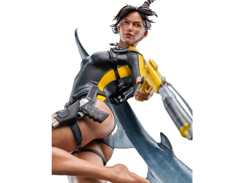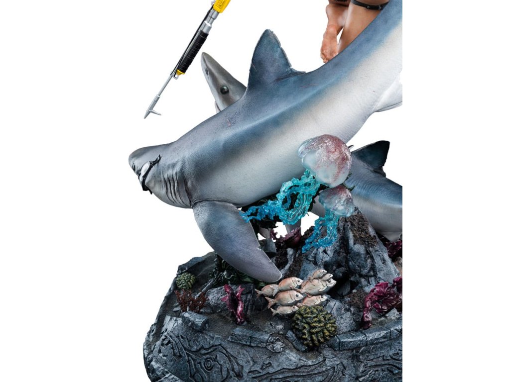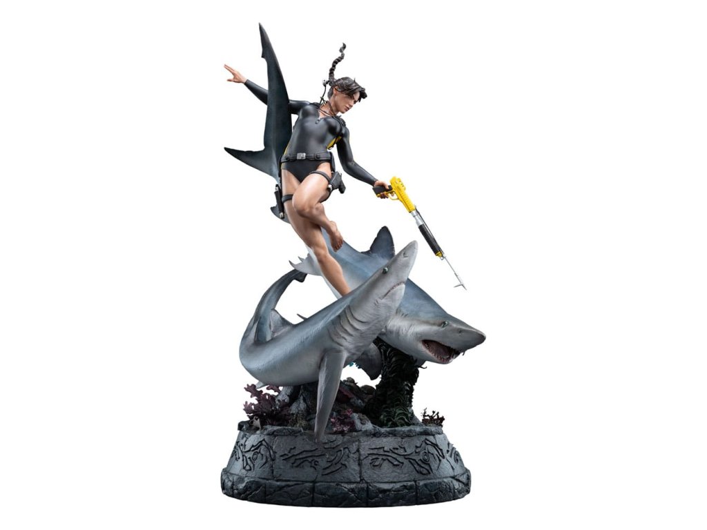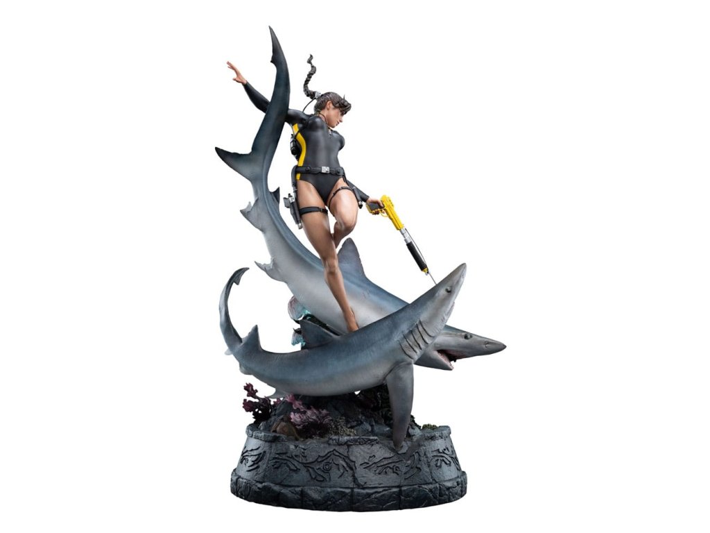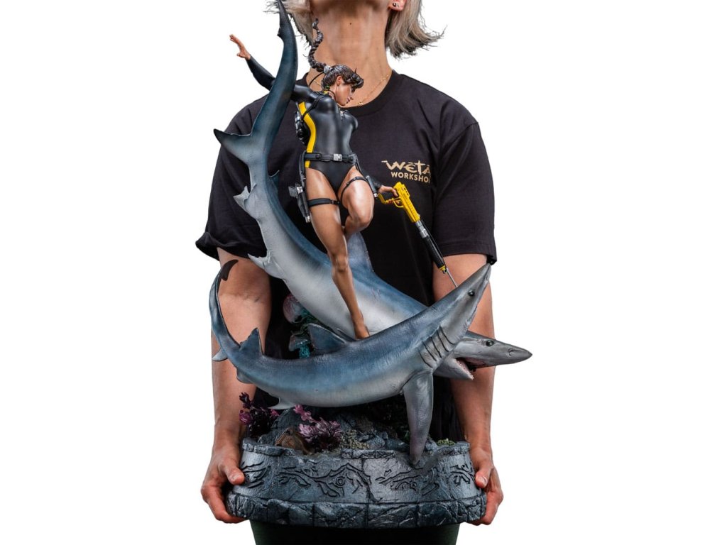 Oceán má svoje tajomstvá prísne ukryté, pochované pod storočiami soli a kameňa. Lara Croft sa však od neznámeho neodvracia, ale vrhá sa doň strmhlav. V tichých hlbinách, kde starobylé ruiny šepkajú o bohoch a mýtoch a temnotou sa potulujú dravce, pokračuje jej pátranie po Avalone. Čas, príliv a odliv ani strach ju nezastavia pred odhalením pravdy. táto soška Lary Croft: Soška Lara Craft: Hľadanie Avalonu je úchvatným vyobrazením jednej z najtrvalejších ikon herného sveta v mierke 1:4. Tento zberateľský kúsok, vyhotovený do najmenších detailov, zachytáva Laru tak, ako sa objavuje v hre Tomb Raider: Underworld, plne vybavenú v neoprénovom obleku a potápačskej výstroji, s harpúnou v ruke, obklopenú víriacim napätím hlbín.Od plynulého pohybu krúžiacich žralokov až po koralmi pokryté ruiny na morskom dne - každý prvok je starostlivo navrhnutý tak, aby evokoval nebezpečenstvo, krásu a mýtický rozsah Lařinej podmorskej výpravy. Medzi ruinami sa skrýva kŕdeľ rýb, ktorý sa prepletá cez rozpadávajúce sa skaly a dodáva scéne život a pohyb.Toto je hlbokomorská snímka Lary v jej najodvážnejšej podobe, medzi starovekými mýtmi a súčasným nebezpečenstvom, a zachytáva surovú podstatu jej odhodlania. Pre tých, ktorí ju sledovali na jej ceste cez rozpadajúce sa chrámy a potopené svety, je táto socha nevyhnutnou pamiatkou na kultové dobrodružstvo.- V mierke 1:4;- Limitovaná edícia 750 kusov;- Vyrobená prevažne z polystonu;- Digitálne vytesaná dielňou Weta Workshop Jorgelina Yemeho s dodatočnými sochárskymi prácami Maura Santiniho;- Zachytáva Laru Croft medzi akciou a nebezpečenstvom, ako ju vidíme vo filme Tomb Raider: Underworld;- Dynamická póza s dvoma žralokmi, dvoma medúzami, húfom rýb a Larou uprostred potápačského manévru.- Vysoko detailný podstavec plný koralov, morského detritu a rozpadnutých starovekých ruín.rozmery: 30,5 x 74 x 45 cm. Vzhľadom na veľkosť tohto predmetu môžu byť potrebné dodatočné náklady na dopravu. Na určenie týchto nákladov musíme okrem vašej polohy zistiť aj skutočnú veľkosť a hmotnosť zásielky. Oba tieto údaje nie sú v súčasnosti známe a nemusia byť k dispozícii, kým položka nedorazí do nášho skladu.Dodatočné parametre