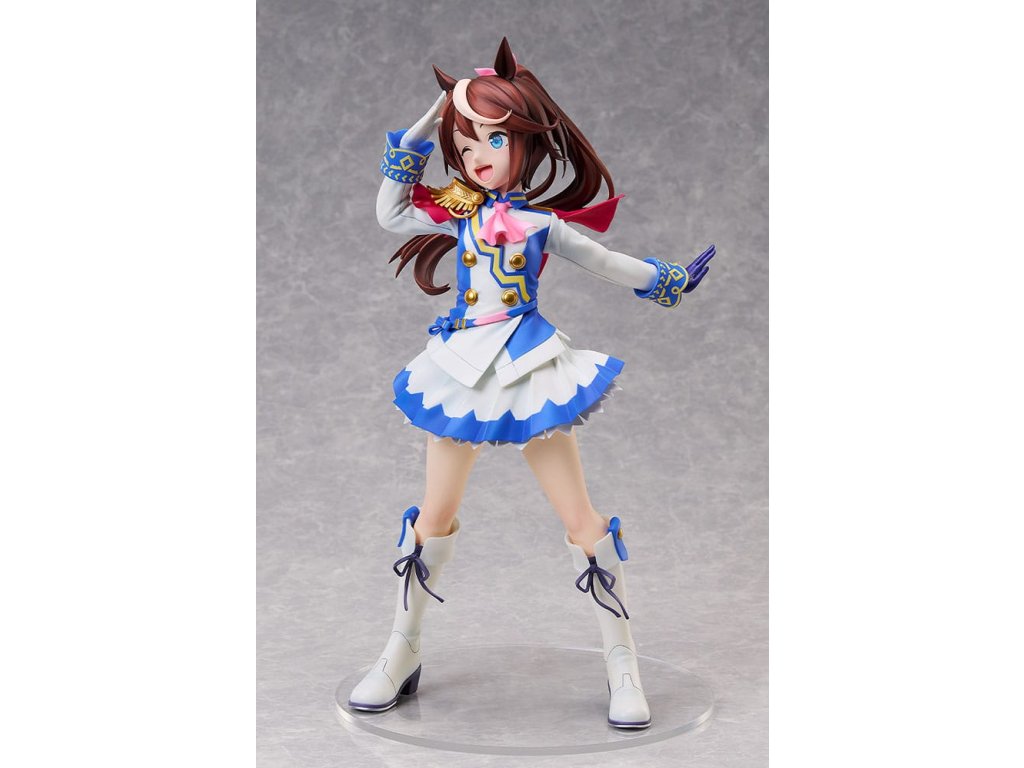 Zo série "Umamusume: Tokai Teio. Jej oslnivý úsmev a roztomilá žmurkajúca póza, ktorá vystihuje jej energickú osobnosť, boli verne reprodukované v podobe sochy. Jej charakteristický modro-biely outfit bol starostlivo vymodelovaný do najmenších detailov, ako sú zlaté gombíky, doplnky na rukávoch a ružová stuha na hrudi. Záhyby jej sukne a vlajúce vlasy boli vytvarované tak, aby soške dodali dynamický vzhľad, ktorý umožňuje dokonalý pohľad na prenikavý pôvab Tokai Teio z akéhokoľvek uhla. Nezabudnite si do svojej zbierky pridať túto 400 mm vysokú, veľkú repliku Tokai Teio a vychutnajte si každý detail zblízka!Dodatočné parametre
