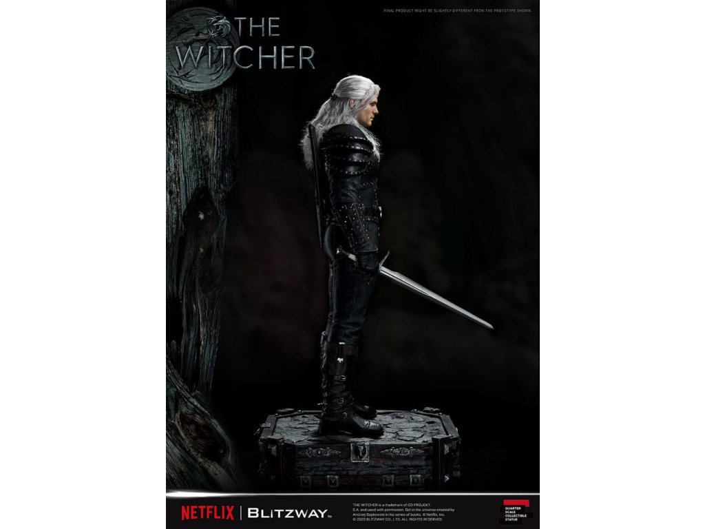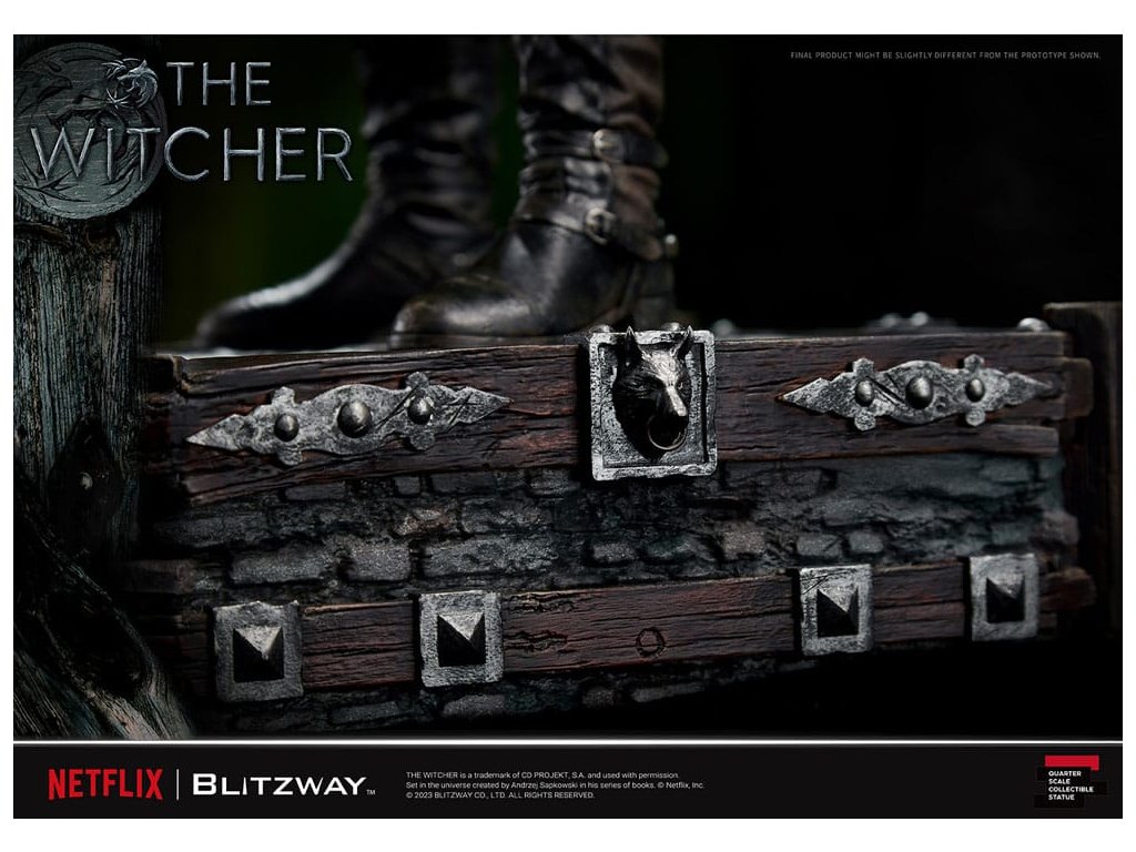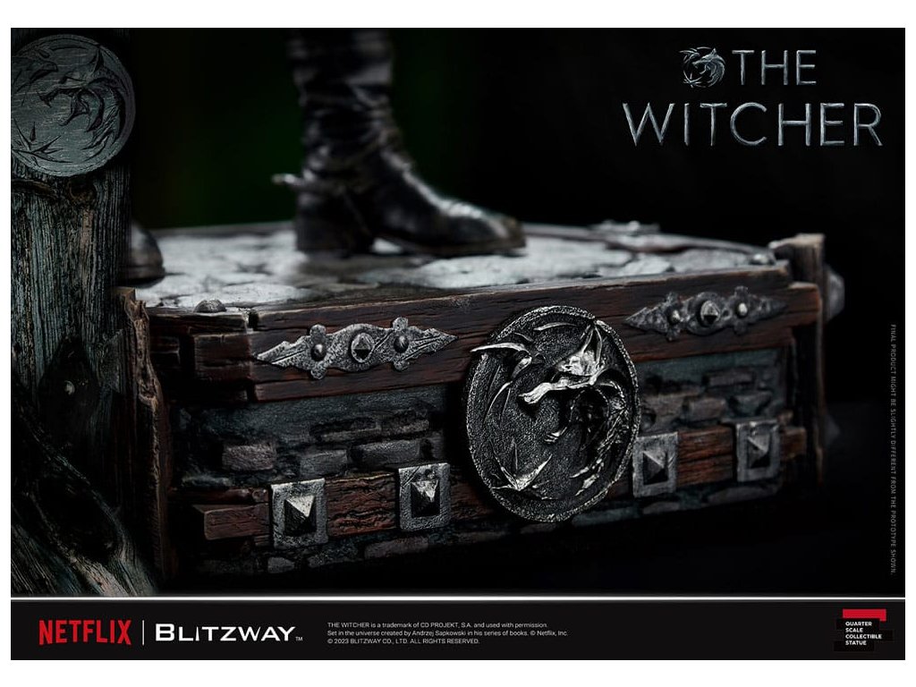 "Zaklínač" je fantasy dramatický seriál z produkcie spoločnosti Netflix, ktorý vznikol na základe rovnomennej knižnej série Andrzeja Sapkowského. Seriál má oddanú fanúšikovskú základňu a popularitu si získal aj ako videohra. Hlavný hrdina Geralt, ktorého stvárňuje Henry Cavill, je zaklínač, lovec príšer s výnimočnými šermiarskymi a magickými schopnosťami. Napriek svojmu chladnému a brutálnemu vzhľadu má silný zmysel pre povinnosť a morálne zásady. Jeho dobrodružstvá a cesty tvoria jadro série Zaklínač a dodávajú príbehu hĺbku a šarm. Soška Blitzway, známa svojimi výnimočnými detailmi a remeselným spracovaním, je nevyhnutným zberateľským artiklom pre fanúšikov série Wizard. Zachytáva Geralta v jeho odvážnom rozpoložení a umožňuje nadšencom ponoriť sa do bohatého sveta Zaklínača. Zoznámte sa s Geraltom zo série Zaklínač prostredníctvom sošky Blitzway. Priblížite sa k jeho dobrodružnému a odvážnemu svetu. Technické špecifikácie:- Výška sochy približne 22 palcov [Š 300 mm x D 300 mm x V 560 mm (vrátane podstavca)] - Vysoko detailná podobizeň sochy Henryho Cavilla - Motív Zaklínača na podstavci - Jedna (1) hlava s korienkami vlasov - Dve (2) vymeniteľné pravé ruky (normálna, držiaca meč) - Jeden (1) meč (strieborný) - Jeden (1) náhrdelník - Štyri (4) elixíry (vo vrecku)Dodatočné parametre