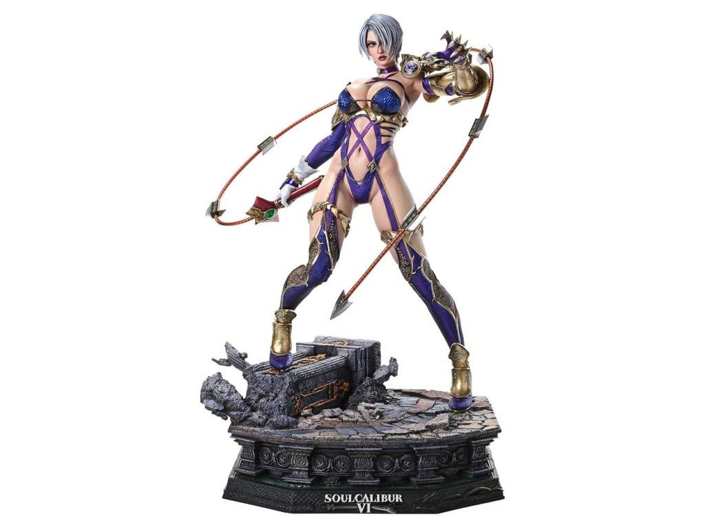 "Tvoj trest bude dosť prísny." Rotujúci meč samoty ožíva v realistickom prevedení v mierke 1/4. S reštartom oživuje sériu, "SOULCALIBUR ?" je akčná bojová hra založená na zbraniach, ktorá sa môže pochváliť špičkovou hrateľnosťou a ohromujúcim vizuálom. Od tohto dielu sa IVY pridáva k radom skutočnej elitnej majstrovskej línie. Adoptovaná dcéra váženej rodiny Valentínovcov sľubuje, že zničí prekliatu čepeľ, a vydáva sa na osudovú cestu. Táto soška v mierke 1/4 zachytáva jej pôvab a šermiarske umenie. Jej póza, inšpirovaná vizuálom postavy, ju znázorňuje, ako drží v ruke magický meč IVY Blade pripomínajúci bič. Každý detail bol starostlivo navrhnutý tak, aby vytváral elegantný pocit dynamiky - od zakrivenia jej trupu až po zaťaženie pravej nohy pri vykročení. Pramene jej jemných strieborných vlasov, zložité vzory na dúhovkách a lesk vlhkého rúžu - jemné črty tváre oživujú herné vizuály s vysokou mierou realizmu. Od postavy, ktorá vyvažuje ženskosť a silu, až po kostým dokončený s dôkladným dôrazom na odtiene fialovej, každý prvok je bohato prepracovaný do detailov. Špeciálny podstavec je inšpirovaný "Svätyňou Eurydiky: Oblačná svätyňa." Jeho dizajn, založený na jednej z najikonickejších lokalít série, ešte viac prehlbuje pocit ponorenia sa do herného sveta. Točiaci sa meč Solitude je dodávaný v mierke 1/4 realistického prevedenia. Vďaka vyladeným technikám sochárstva a maľovania vás bude chytať mráz po chrbte. Špecifikácie produktu: - Základňa s motívom "SOULCALIBUR ?".Dodatočné parametre