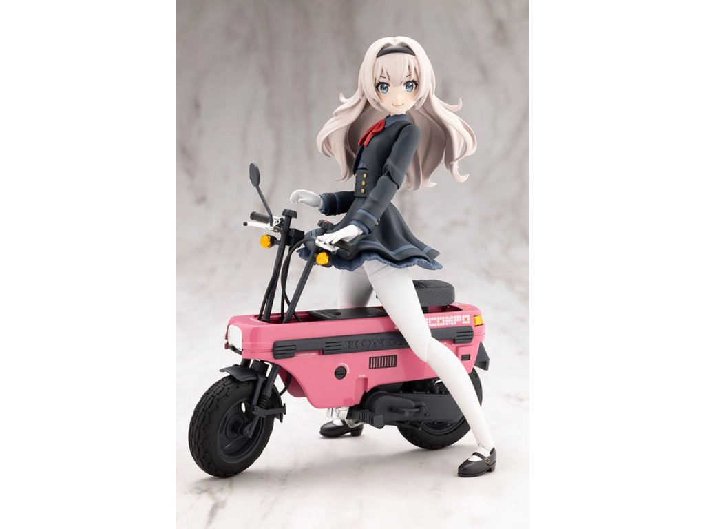 "Sousai Shojo Teien spĺňa Honda Motocompo! Zo Sousai Shojo Teien, Emma-chan Senpai naskakuje na Hondu AB12 Motocompo '81 Aoshima Bunka Kyozai v špeciálnej spolupráci! Najdôležitejšie produkty! Špecifikácie modelu: - Obsahuje 1/12 modelu '81 Honda AB12 Motocompo, ktorý pre tento produkt exkluzívne namaľoval Aoshima Bunka Kyozai - Časti pneumatík Motocompo sú novo navrhnuté - Súprava obsahuje úplne nový diel prilby. Originálna farba - Uniforma má originálnu farebnú schému založenú na čiernej a bielej farbe, čo jej dodáva pokojný a sebavedomý pocit. Je to odklon od žiarivého Emmy-chan, ktorý sme doteraz videli, s mierne dospelejším vzhľadom - Model používa farbu pleti C, ktorá zodpovedá tónu uniformy - Súčasťou je jeden nastriekaný diel tváre (smiech). Farba očí je nová žiarivo modrá, ktorá dokonale dopĺňa farbu modelu! Súčasťou sú štyri diely sukne - štandardná, voľná, rozšírená a sedacia. Vďaka sediacim dielom nohavíc môže Emma-chan jazdiť nielen na HEXA GEAR, ale aj na Motocompo! Nenechajte si ujsť Emma-chan, ktorá jazdí na svojom Motocompo so štýlom! * Na zostavenie dielu 1/12 Motocompo '81 Honda AB12 sú potrebné lepidlá. Od Sousai Shojo Teien, Emma-chan Senpai sa snaží zložiť 1/12 Honda AB12 Motocompo '81 od Aoshima Bunka Kyozai v jednom kuse! Súčasťou balenia sú: - 1 x model Emma Koishikawa - 2 x diely účesu: Dlhé vlny, Dvojitý chvost a Satelit * Satelit a Dvojitý chvost nemožno zostaviť súčasne, pretože používajú rovnaký základný spojovací diel. - 4 x typy vlasových dielov, každý po 1: Čelenka (štandardná), Čelenka (okuliare), Bez čelenky (štandardná), Bez čelenky (vlasové doplnky) - 1 x nastriekané časti tváre (úsmev) Každá - 4 x typy nenamaľovaných častí tváre (smejúce sa/kričiace/rozrušené/odolné) Každá 11 x Typy dielov rúk (držanie kresliacej tabuľky/držanie počítačovej tabuľky/držanie herného ovládača/chladná otvorená ruka/držanie štandardná/držanie úzka/držanie široká/držanie okrúhla/uzavretá/ukazovanie/prázdna) ľavá a pravá Po - 1 x Telo sa nakláňa dopredu - 1 x Diely sedacej nohy - 4 x Typy dielov sukne (štandardná/tekutá/roztiahnutá/sediaca) Každý * Pri sedacej nohe je potrebné použiť sediacu sukňu. - 1 x Súprava dielov na vyzúvanie topánok - 1 x Počítačový tablet - 1 x Kresliaci tablet - 1 x Dievčenská stredoškolská taška St Iris Gakuen - 5 x Vlasové doplnky - 1 x Expozičný podstavec - 1 x Kompatibilný 6 mm diel na krk s Megami Device - 1 x Obtlačkový list na tvár - 1 x 1/12 Honda AB12 Motocompo '81 * Obsahuje novo navrhnuté diely pneumatík - 1 x Diel prilby".Dodatočné parametre
