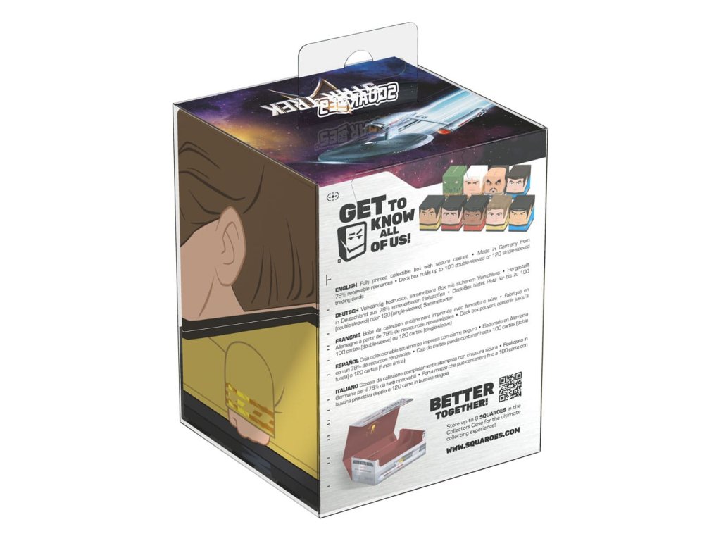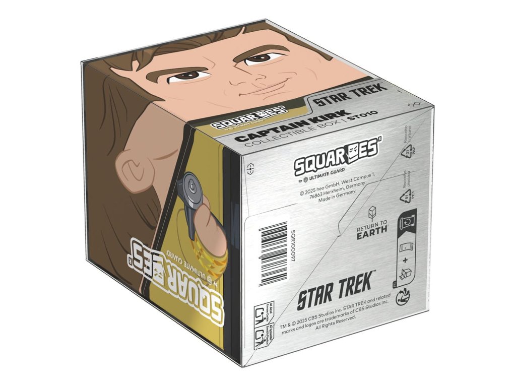 Zberateľská škatuľa na uloženie balíčkov TCG, príslušenstva k stolným hrám a/alebo zberateľských predmetov. Squaroe s kapitánom Kirkom z edície Star Trek: Pôvodná séria pojme až 100 kariet v dvojitých ochranných puzdrách, ak sa používa ako krabička na karty. Squaroe sú vyrobené zo 78 % z obnoviteľných zdrojov a dokonale sa hodia do samostatne dostupného zberateľského puzdra.