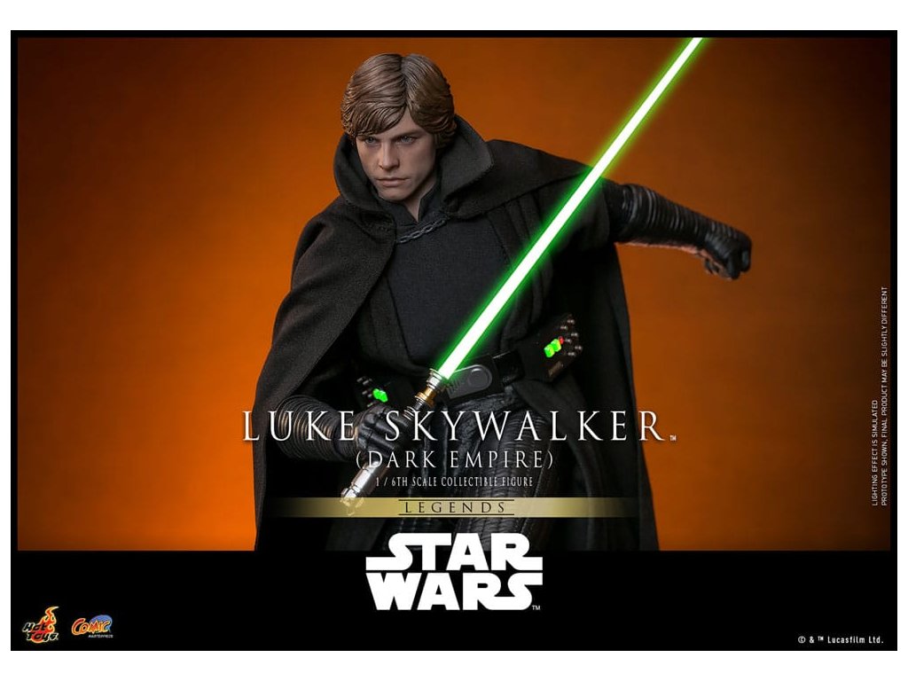 Na oslavu jedného z veľmi populárnych príbehov Star Wars™ Legends spoločnosti Sideshow a Hot Toys s radosťou predstavujú úžasnú zberateľskú figúrku Luka Skywalkera (Temné impérium) v šiestej mierke, inšpirovanú obálkou komiksu Star Wars: Temné impérium! Vysoko detailná zberateľská figúrka Luka Skywalkera má starostlivo vymodelovanú hlavu s výraznou podobizňou a funkciou otáčania očí, ktorá umožňuje polohovať líniu očí, precízne upravený obrnený oblek inšpirovaný legendou Temného impéria, svetelné meče™ s LED svetlom a podstavec na vystavenie! Fanúšikovia Star Wars si nenechajte ujsť príležitosť pridať túto zberateľskú figúrku Luka Skywalkera zo špeciálnej edície do svojej expozície figúrok Star Wars.