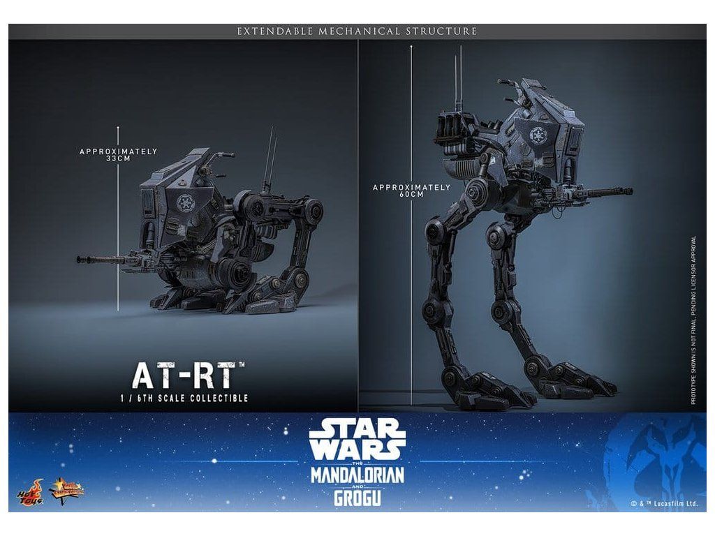 V hre Star Wars: The Mandalorian & Grog™ predstavujú rozptýlené sily Imperiálneho zvyšku naďalej významnú hrozbu a na presadenie svojej vôle využívajú zachované zdroje. Medzi ich arzenál patrí aj terénny prieskumný transportér (AT-RT), rýchly a obratný dvojnohý chodec obľúbený na prieskumné misie, hliadkovanie a rýchle pozemné útoky. Spoločnosti Sideshow a Hot Toys s potešením predstavujú zberateľský doplnok AT-RT™ pre figúrky v mierke 1/6.