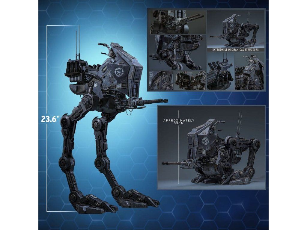 Walker ožíva vďaka jemným náterom a špeciálne aplikovaným efektom opotrebovania, ktoré vykresľujú hrdzavý, bojom opotrebovaný vzhľad. Má oceľovo sivý náter s odznakom Impéria na vonkajšej strane. Meria impozantných 60 cm na výšku, keď je úplne vysunutý, a 33 cm, keď nie je zdvihnutý; má novo vyvinutú mechanickú konštrukciu s viac ako 10 bodmi kĺbov. Mechanické nohy a predný blasterový kanón sú kĺbové, čo umožňuje lepšie polohovanie. Sedadlo vodiča je vybavené pohyblivými rukoväťami a opierkami nôh a dokonale sa hodí k našim figúrkam v mierke 1/6 z kolekcie The Mandalorian & Grog™, ako je napríklad zberateľská figúrka Imperial Remnant AT-RT Driver™ Sixth Scale alebo zberateľská figúrka The Mandalorian™ Sixth Scale.