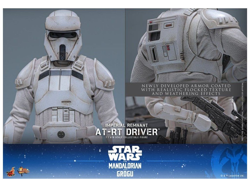 V čase, keď sa galaxia pripravuje na ďalšiu filmovú časť očakávanej série Star Wars: Mandalorian & Grog™, predstavujú rozptýlené sily Imperiálnych pozostatkov naďalej vážnu hrozbu. Vodiči AT-RT Imperiálnych pozostatkov, prispôsobení drsným podmienkam, riadia agilné terénne prieskumné transportéry (AT-RT), ktoré hliadkujú na zamrznutých hraniciach a používajú špecializované vybavenie na prežitie a potlačenie akéhokoľvek odporu. Spoločnosti Sideshow a Hot Toys s potešením predstavujú zberateľskú figúrku v mierke 1:6: Vodič AT-RT zo skupiny Imperial Remnants™.