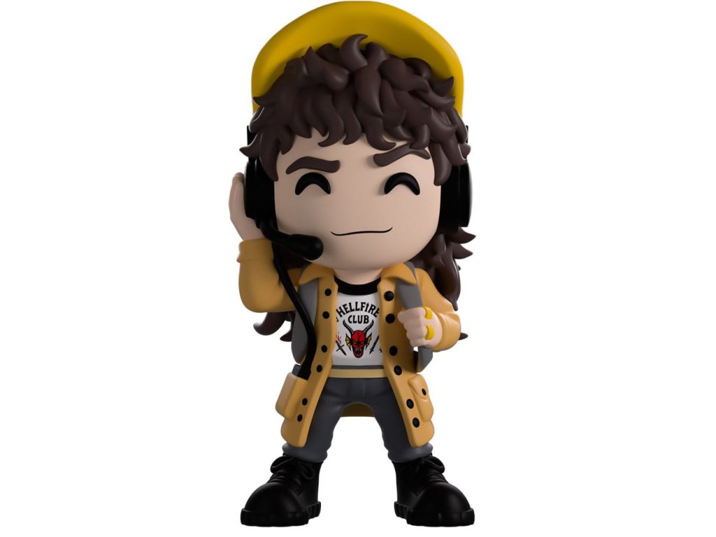 Dustin na prípade! Aký prípad? Nepýtaj sa, je to prísne tajné! A určite to nemá nič spoločné s jeho návratom na Youtooz! Stojí päť centimetrov vysoký so sebavedomým úsmevom na tvári, zatiaľ čo sa mu na dlhých hnedých vlasoch krúti žlto-modrá čiapka, hlavu mu zakrýva čierny headset s mikrofónom, ktorý mu zakrýva tvár, a kábel vedúci k zariadeniu vo vrecku. Na tričku Hellfire Club nosí zlaté prstene a svetlohnedý kabát, cez plecia má prehodený sivý ruksak, zatiaľ čo tmavé nohavice vedú až k čiernym čižmám. Z vonkajšej strany ich batohu vidno jeho červený vektor na čiernom pozadí, cez ktorý sa tiahnu bledé výhonky, zatiaľ čo vnútrom horizontálne prechádzajú neónovo červené čiary. Tie potom prechádzajú na ochranný obal, kde je možné vidieť jeho postavu cez veľké priehľadné okno na prednej strane balenia. Tento zberateľský predmet sa dodáva v matnom, reliéfnom, ochrannom vonkajšom obale a vo vlastnom plastovom ochrannom obale na maximálnu ochranu počas prepravy. O seriáli Stranger Things: Stranger Things je americký sci-fi hororový televízny seriál vytvorený bratmi Dufferovcami a vysielaný na Netflixe. Seriál sa odohráva v 80. rokoch 20. storočia vo fiktívnom meste Hawkins v štáte Indiana. Seriál sa zameriava na skupinu priateľov, ktorí vyšetrujú sériu nadprirodzených udalostí, ktoré sa dejú v okolí mesta. Vytvorili si spojenie s nepriateľskou alternatívnou realitou nazývanou "Upside Down" a musia nájsť spôsob, ako z nej uniknúť. Predbežný dátum vydania: júl 2026Dodatočné parametre
