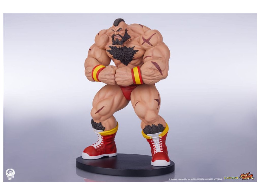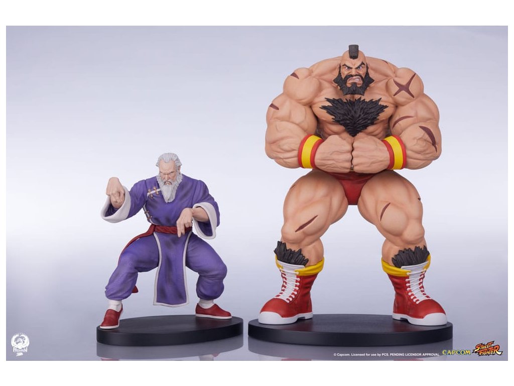 Štúdio Premium Collectibles predstavuje sadu sôch Street Fighter - Street Jam: Zangief & Gen v mierke 1:10. Táto sada dvoch sôch v mierke 1:10 je najnovším prírastkom do radu PCS Street Jam, ktorý vychádza z ikonického plagátu Udon s výberom populárnych postáv zo série Street Fighter. Zangief a Gen sú rovnako odlišní vzhľadom ako správaním. Zangief je mohutný zápasník, ktorý si cení predovšetkým silu a svoj ohromujúci talent predvádza v zápasníckom ringu, aby ho všetci videli. Na druhej strane Gen je malej postavy a napriek svojej pochybnej minulosti sa teraz snaží viesť čestný život a vyzvať na súboj len nepriateľov, ktorých považuje za čestných. Obe figúrky v tejto sade sú plne vyobrazené - každá z nich je zobrazená v póze reprezentujúcej ich osobnosť. Zangief napína svoje mohutné svaly, tvár má zdeformovanú od námahy, aby ukázal každý centimeter svojej impozantne vypracovanej postavy. Gen je vyrovnaný v bojovom postoji, zadnú nohu má pevne položenú a ruky pripravené na úder. Každý detail jeho tradičného odevu a zostarnutej postavy je tu stvárnený do úžasných detailov. Dodajte svojej zbierke rovnováhu a predobjednajte si sadu sošiek Street Fighter - Street Jam: Zangief & Gen v mierke 1:10 ešte dnes! Rozmery: - Zangief: 23 x 15 x 13 cm - Gen: 15 x 10 x 13 cmDodatočné parametre