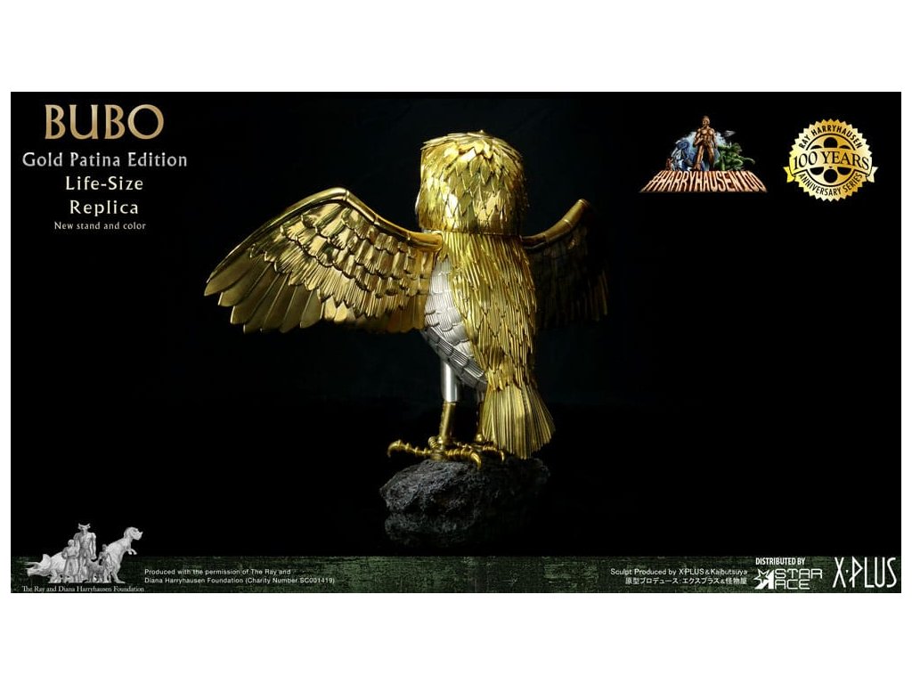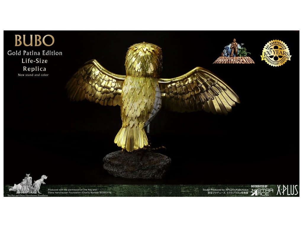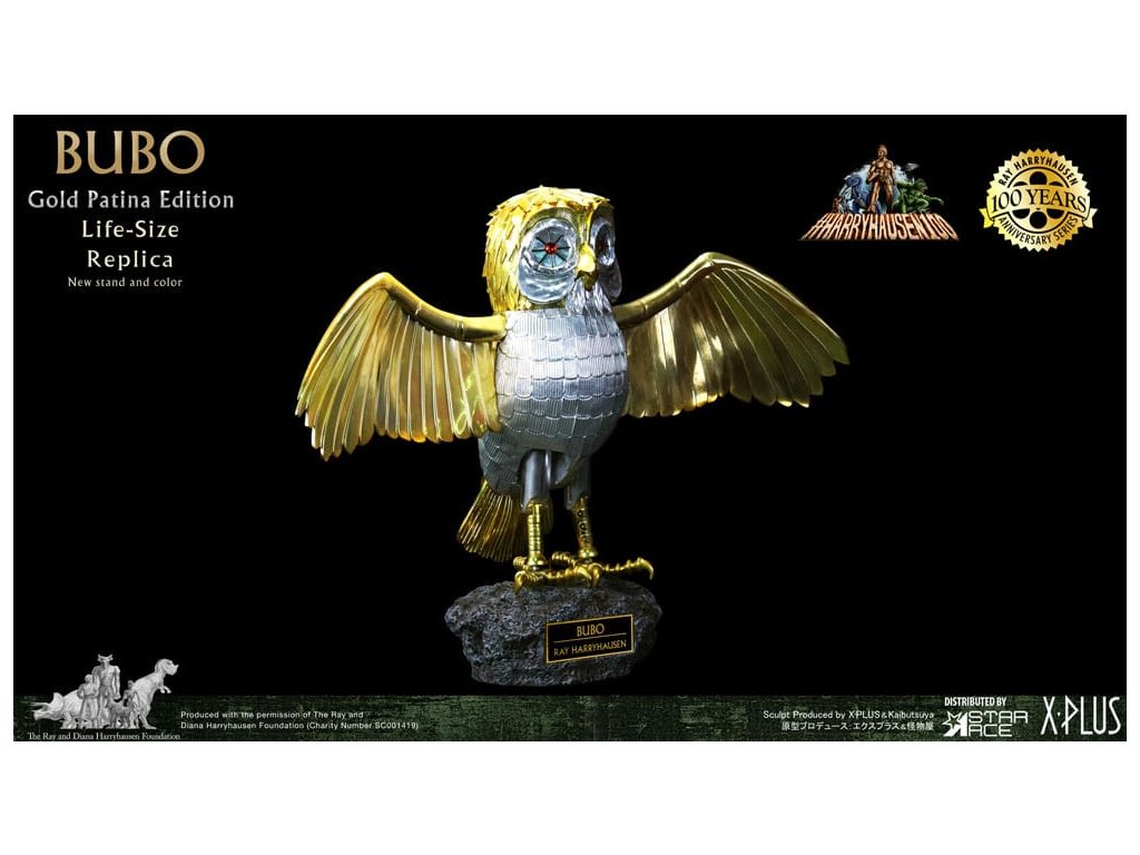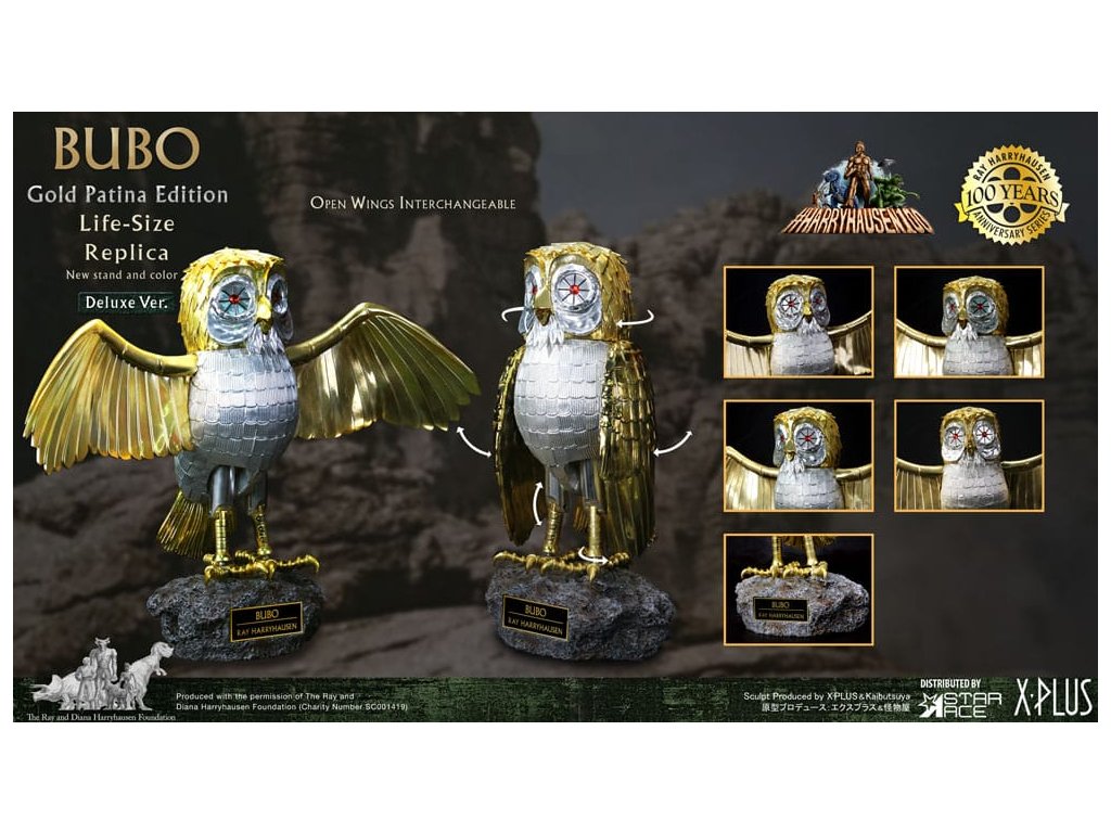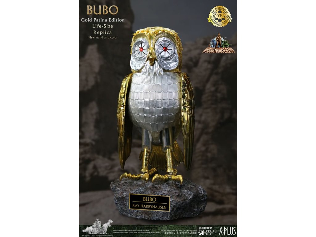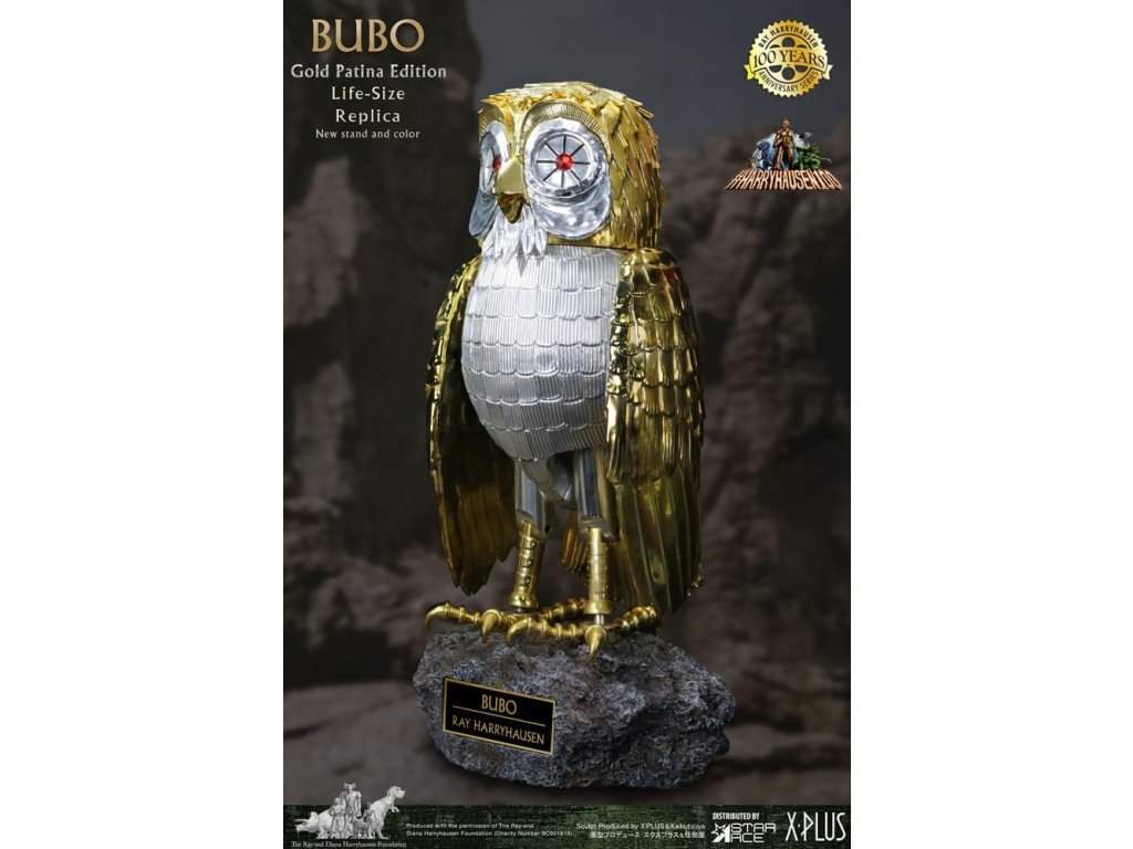 Zo sveta Raya Harryhausena a klasického filmu Súboj Titanov prichádza detailná reprodukcia mechanickej sovy stvorenej bohmi. Spoločnosť Star Ace predstavuje tento zberateľský kúsok Bubo v životnej veľkosti, ktorý je navrhnutý tak, aby zachytil vzhľad pôvodnej rekvizity použitej vo filme. Táto replika meria na výšku 30 palcov, čo zodpovedá mierke originálu. Hlava a nohy sú kĺbové a obsahujú dva páry vymeniteľných krídel: jeden pár zložený pre odpočinkovú polohu a jeden pár s otvorenými krídlami pre aktívnejšie zobrazenie. Figúrka má simulovanú zlatú patinu, ktorá odráža vek pôvodnej rekvizity. Je vyrobená z vinylu a dodáva sa s polyresinovou základňou, ktorá obsahuje menovku. Súprava obsahuje figúrku Bubo, oba páry krídel a podstavec na vystavenie. Tento oficiálne licencovaný výrobok je dôležitým predmetom pre zberateľov filmových memorabílií a klasickej fantasy. približný dátum vydania: august 2026Dodatočné parametre