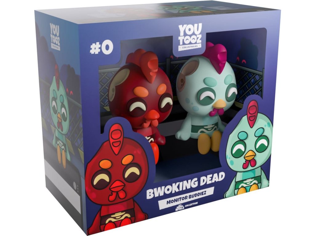 Dávajte pozor!! Kurčatá sa rýchlo šíria!! Tieto dve kurčatá, ktoré sedia vo výške 7 cm, vyzerajú... trochu inak ako zvyčajne. Zombie Joe je svetlo azúrovo sfarbené kurča, ktoré má odhryznutú časť hlavy a hrebeň na vrchole hlavy. Na tvári má nahnevaný výraz a vidno mu dovnútra tela až na hruď. K tomuto páru sa dodáva aj červený Zombie Joe, ktorý je rovnaký, ale v červenej farbe! Títo najlepší kamaráti prichádzajú v nápadito navrhnutej krabici, ktorá zobrazuje oplotený a ohradený priestor vnútri aj vonku, spolu s pohľadom do krabice cez priehľadné okienko v prednej časti. o hre Super Animal Royale: Super Animal Royale je multiplayerová strieľačka na prežitie zhora až pre 64 roztomilo vražedných superzvírať. Vyberte si svojich obľúbencov z ponuky líšok, pánd, mačiek a ďalších krvilačných šeliem. Potom zoskočte padákom do ruín nešťastného safari parku a odrazte smrtiaci nápor guliek, výbuchov a hlúpych tancov!Dodatočné parametre