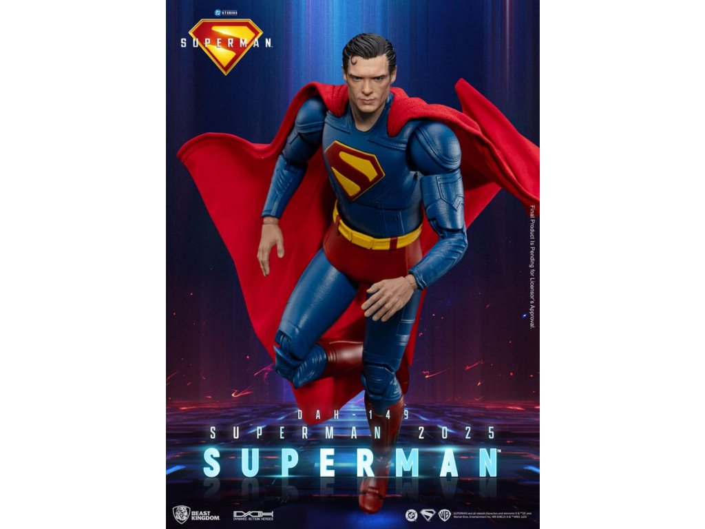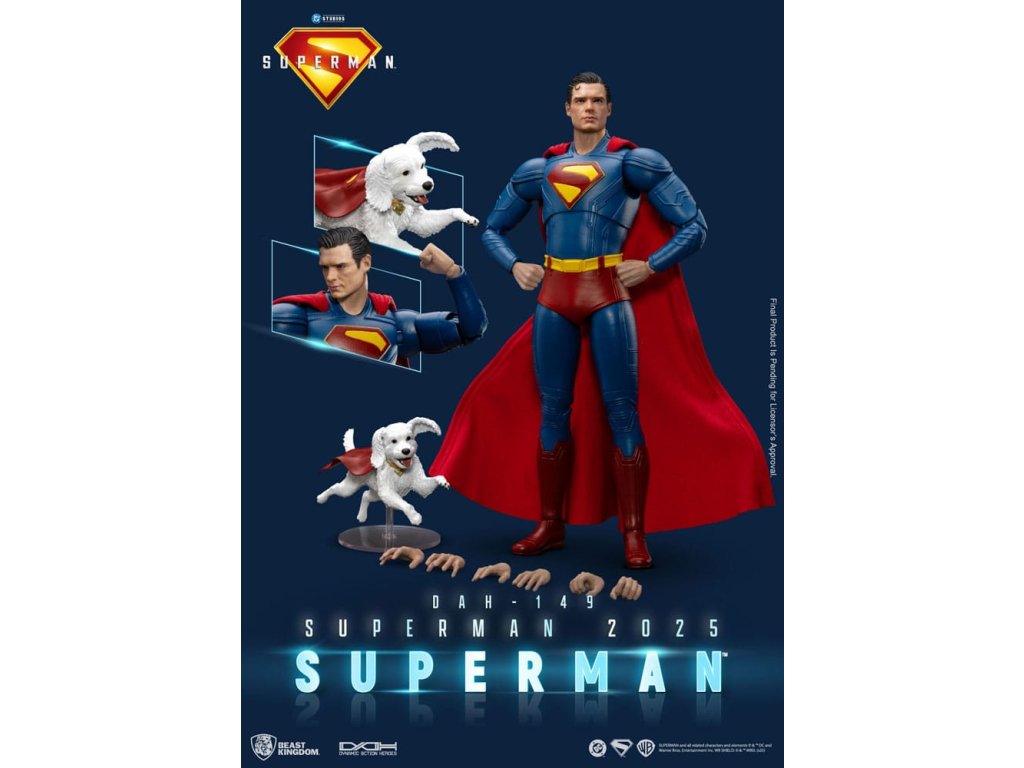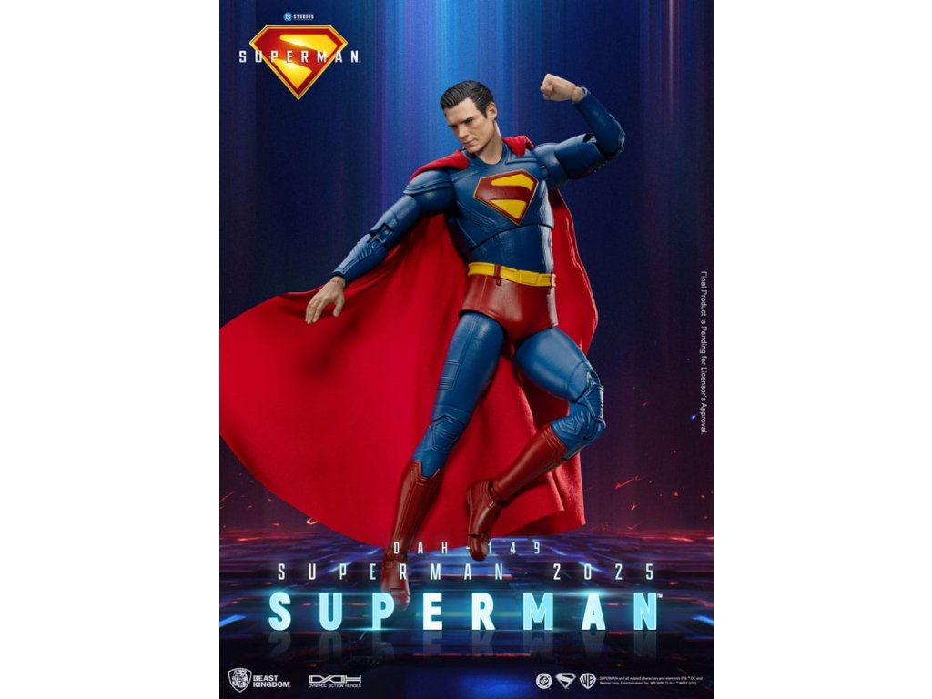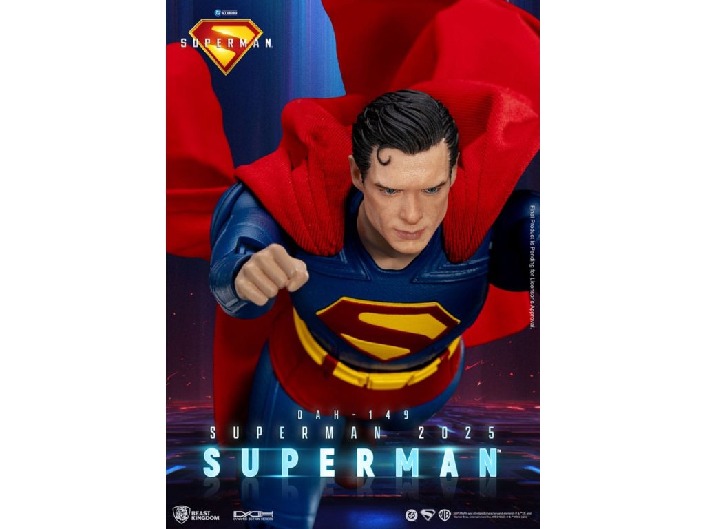 "Svoje schopnosti považujem za dar, nielen pre seba, ale pre každého, kto ich potrebuje." Najikonickejší hrdina vesmíru DC, Superman, sa vracia v triumfálnej podobe! Jeho návrat predznamenáva pripravovaný film štúdia DC "Superman: 2025", na ukážku ktorého Kráľovstvo šeliem hrdo predstavuje úplne nový pohľad na Muža z ocele v rámci série Dynamic 8ction Heroes (DAH). Vstúpte do Metropolis a staňte sa svedkami znovuzrodenia legendy!Táto figúrka, vyrobená pomocou vysokokvalitného 3D modelovania a odborného maľovania, verne stvárňuje úplne nový dizajn obleku, ako ho vidíme vo filme Superman: 2025. Tmavomodrý tmavomodrý oblek je doplnený žiarivo červeným plášťom a klasický emblém "S" na hrudi je prezentovaný nápaditou trojrozmernou červenožltou plastikou, ktorá symbolizuje nový úsvit nádeje a spravodlivosti. Socha hlavy zachytáva podstatu herca na plátne, od jeho ikonického účesu až po ostrý, odhodlaný pohľad očí. Figúrka má zhruba 22 bodov artikulácie, čo zberateľom umožňuje stvárniť množstvo klasických póz. Súčasťou sú aj štyri páry vymeniteľných rúk (päste, otvorené ruky, ruky držiace predmet a uvoľnené ruky) pre dynamické možnosti vystavenia. ako bonus súprava Supermana obsahuje Supermanovho verného psieho spoločníka, superpsa Krypta, ktorý dokonale stvárňuje ich hrdinské puto a ešte viac zvyšuje hodnotu vašej zbierky. nech ste kdekoľvek, Superman vždy predstavuje tú najsvetlejšiu stránku ľudstva. Teraz nechajte tohto legendárneho hrdinu z Kryptonu zažiariť ako ústredný prvok svojej zbierky! - Jemne vytvarovaná hlava zachytávajúca podobizeň z filmu Superman: 2025 - Štíhle telo s pohyblivosťou s približne 22 kĺbmi - 4 sady vymeniteľných rúk: päste, otvorené ruky, ruky chytajúce predmet a uvoľnené ruky - Príslušenstvo: Krypto, Superpes.Dodatočné parametre