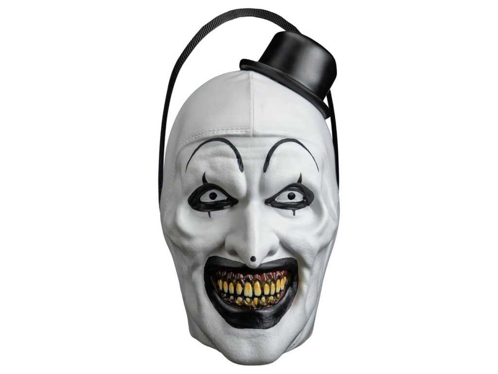 Spoločnosť Trick or Treat Studios s hrdosťou predstavuje oficiálne licencované vedierko na cukríky Scarecrow 2 - Clown Art, inšpirované ikonou sadistického zabijaka z obľúbenej hororovej série. Vedierko zdobí vyrezávaný dizajn hlavy klauna Arta s ohybnou plastovou rukoväťou a odnímateľným vekom pripomínajúcim klobúk, ktoré sa vyklopí na vloženie halloweenských pochúťok. Stojí približne 23 cm vysoké s otvorom s priemerom 18 cm. Určená len na balené cukríky a vystavovanie. Nie je vhodný na priamy kontakt s potravinami. Umývajte jemne v ruke; nenamáčajte. Nie je možné umývať v umývačke riadu.Dodatočné parametre