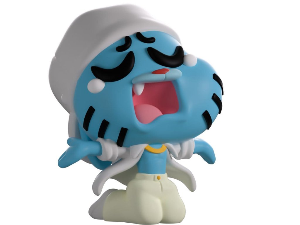 "Nemôžem sa rozlúčiť, lebo by ma mohol rozomlieť na mäsový koláč." Gumball sa síce nemôže rozlúčiť, ale určite môže pri svojom debute na Youtooz povedať ahoj! Kľačí na kolenách vo výške 6,9 cm a máva rukami na obe strany, je plný emócií, keď nad otvorenými ústami hodí hlavu dozadu so slzami v očiach. Oblečený je celý v bielom s čiapkou na modrej hlave, otvorený pás košele okolo jeho holého hrudníka ukazuje zlatú retiazku na krku a voľné nohavice vedú k svetlým teniskám. Vonkajšia strana obalu zobrazuje Gumballa, ako pridáva pesničku na basketbalovom ihrisku, zatiaľ čo vnútorná strana je vyplnená pestrofarebnými štvorčekmi zobrazujúcimi Gumballove postavičky. Hviezdny čierny ochranný obal má potom hranatý dúhový kríž, zatiaľ čo jeho sošku možno vidieť cez veľké priehľadné okienko na prednej strane balenia. Táto zberateľská figúrka sa dodáva v matnom, reliéfnom vonkajšom ochrannom obale a v plastovom puzdre s rozmermi pre maximálnu ochranu počas prepravy. O seriáli The Amazing World of Gumball: The Amazing World of Gumball je animovaný seriál, ktorý pre Cartoon Network vytvoril Ben Bocquelet. Sledujeme dvanásťročného kocúra Gumballa Wattersona a veselé kúsky, ktoré zažíva so svojou rodinou a priateľmi, kým prežíva na strednej škole a vo všadeprítomnom prázdnom priestore! Predbežný dátum vydania: október 2026Dodatočné parametre