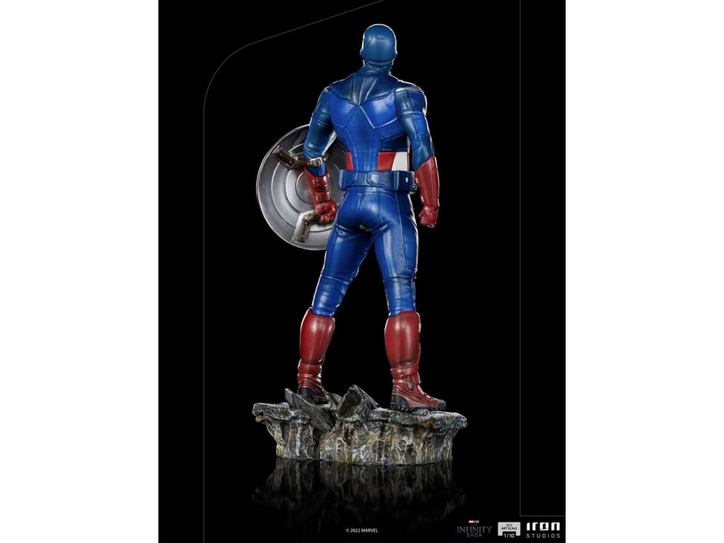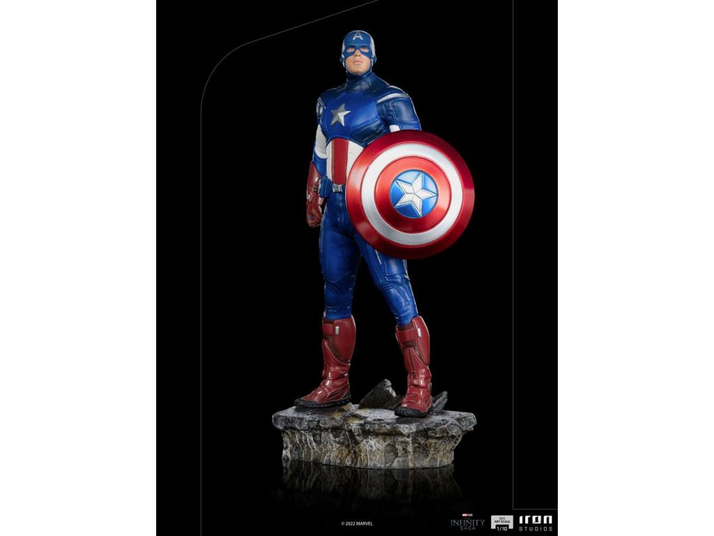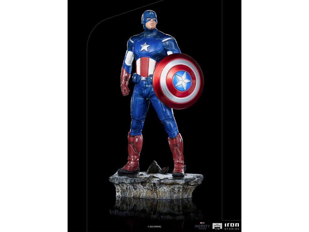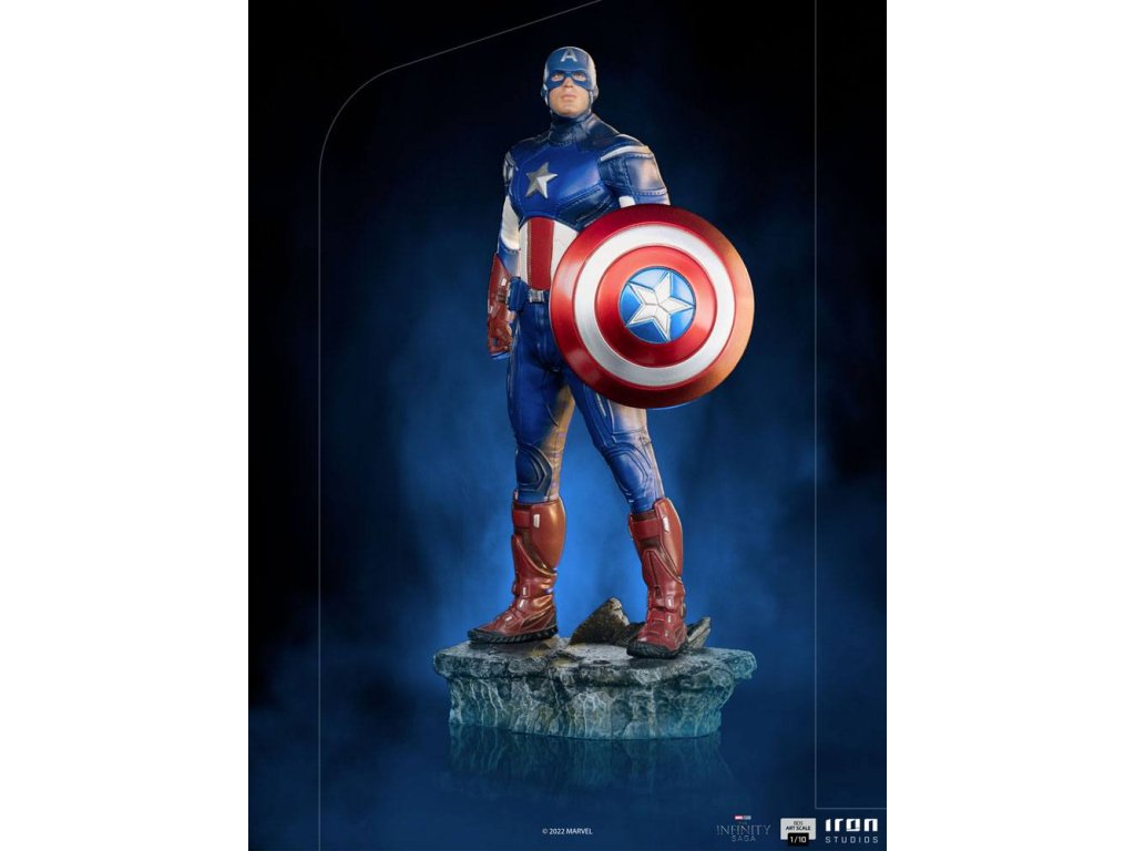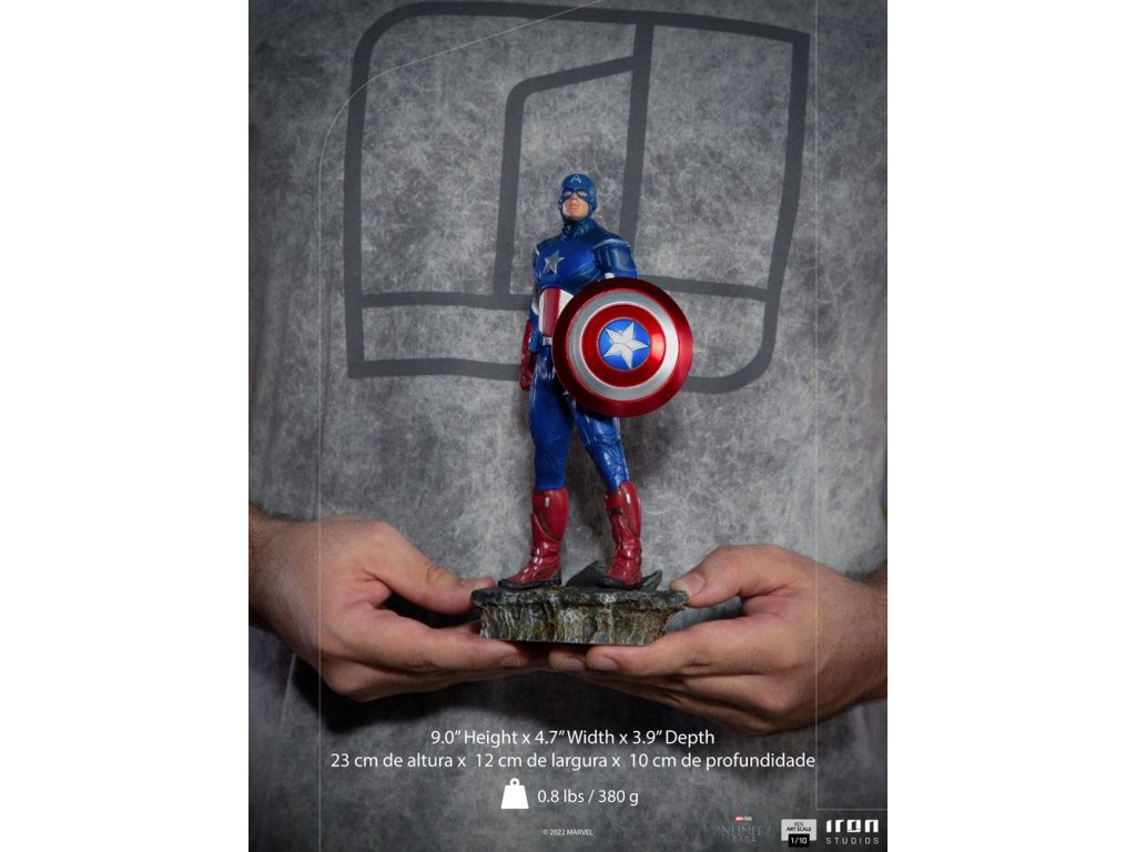 Steve Rogers, Kapitán Amerika, zohral významnú úlohu v bitke o New York. Nosí svoj moderný oblek vyvinutý agentúrou S.H.I.E.L.D., inšpirovaný jeho pôvodným vzhľadom, ktorý však predstavil jeho obdivovateľ a spojenec, agent Phil Coulson, a v ruke drží svoj neoddeliteľný a nerozbitný štít. Iron Studios predstavuje sošku "Captain America Battle of NY - The Infinity Saga - BDS Art Scale 1/10", v ktorej prvý Avenger prenasleduje hrozbu spolu so svojimi spojencami a preberá velenie nad skupinou. Pomocou svojich vodcovských schopností a taktických znalostí koordinuje jednotlivých hrdinov a udržuje sa v boji po boku Black Widow. Rozmery: 23 x 12 x 10 cmDodatočné parametre
