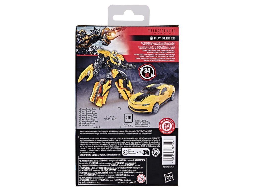 Zažite epické bitky z filmu Transformers: Age of Extinction s akčnou figúrkou Bumblebee zo série Studio. Päťpalcová (12,5 cm) figúrka sa v 34 krokoch transformuje z robota do režimu Chevy Camaro. Vďaka detailom inšpirovaným filmom, prepracovaným možnostiam zostavenia a pripojiteľnej blasterovej výzbroji je táto figúrka Bumblebeeho skvelým doplnkom každej zbierky. Hľadaj ďalšie zberateľské hračky Transformers (predávajú sa samostatne, dostupnosť môže byť obmedzená) s populárnymi postavami ako Optimus Prime, Soundwave, Megatron a ďalšími, aby si vytvoril zostavu, ktorá je - Viac než sa na prvý pohľad zdá.Dodatočné parametre