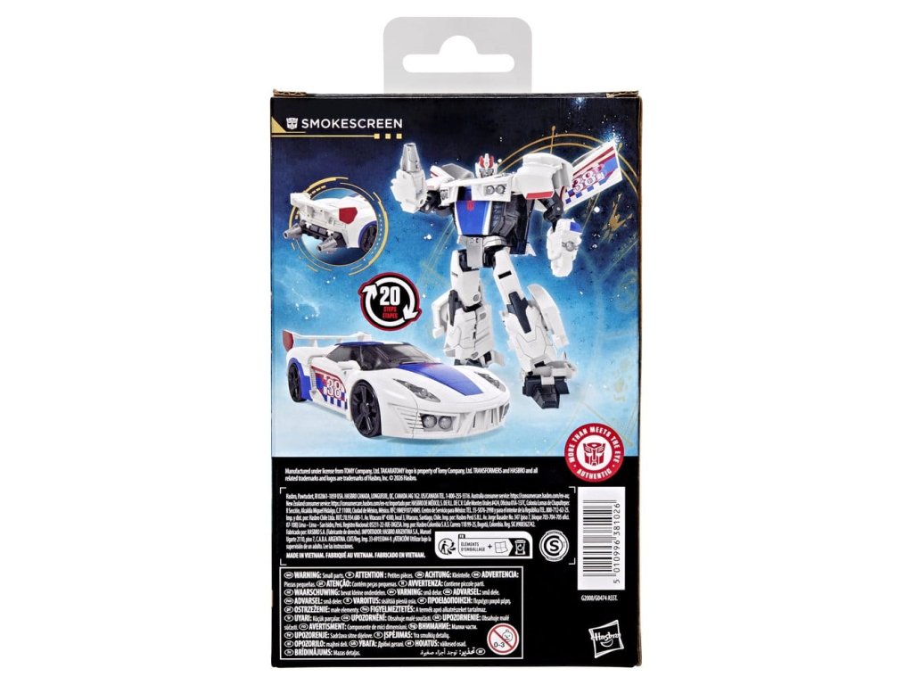 Zažite epický vesmír robotov Transformers s hračkou Transformers Age of the Primes Smokescreen! Táto 5,25-palcová (13 cm) figúrka triedy Deluxe sa v 20 krokoch premení z akčnej figúrky robota na hračkárske auto. Vďaka detailnej artikulácii a 2 pripojiteľným doplnkom v podobe blasterov je akčná figúrka Smokescreen skvelým doplnkom každej zbierky. Hľadaj ďalšie zberateľské hračky Transformers (predávané samostatne, podľa dostupnosti) s postavami ako Swerve, Cliffjumper, Autobot Ratchet a ďalšími, aby si vytvoril zostavu, ktorá je - VIAC, než sa na prvý pohľad zdá.Dodatočné parametre