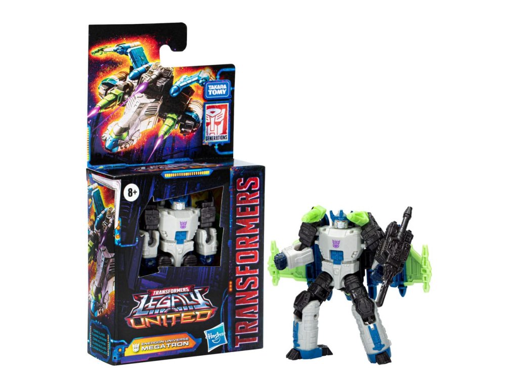 Doplň svoju zbierku o obľúbené postavy Transformers s akčnou figúrkou Megatrona z Energon Universe z kolekcie Transformers Legacy United Core Class! Táto 9-centimetrová figúrka Megatrona z Energon Universe sa v 11 krokoch transformuje medzi robotom a stíhačkou. Priprav sa na boj s pripojeným delom a bláznivým príslušenstvom, ktoré funguje v oboch režimoch. Figúrka Energon Universe Megatron je inšpirovaná postavou z animovaného seriálu Transformers: Energon a má kĺbovú hlavu, ruky a nohy pre úžasné akčné pózy. Oslávte posledných 40 rokov histórie Transformers s akčnými figúrkami Transformers Legacy. Transformers Legacy otvára portál do úplne nového vesmíru - More Than the Eyes Can See - ktorý zhromažďuje všetky generácie Transformers, ktoré ste nikdy predtým nevideli. Zbierajte a kombinujte rôzne figúrky a vytvorte si ideálnu zostavu Legacy.