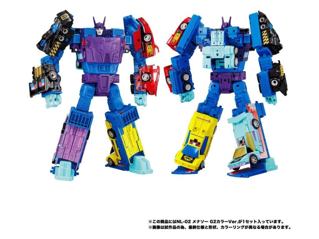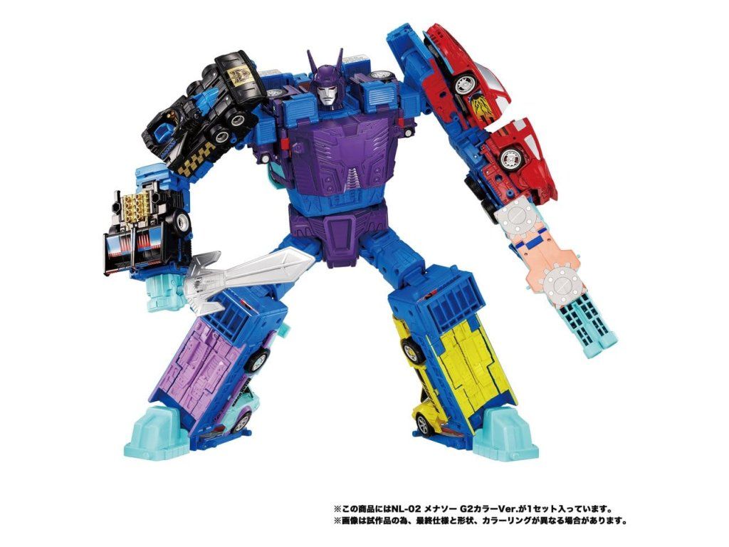 Prineste do svojej zbierky dokonalý zážitok z Transformers so sadou figúrok Takara Tomy Transformers NL-02 Menasor G2. Tieto zberateľské figúrky pre dospelých majú prepracované farby a detaily inšpirované populárnymi postavami Autobotov a Deceptikonov. Sada obsahuje 5 členov tímu Stunticon, ktorí sa transformujú medzi režimami vozidla a robota: Motormaster, Breakdown, Drag Strip, Wildrider a Dead End. Spojte päť Stunticonov dohromady a vytvorte kombinovanú figúrku Menasora. Súčasťou sú doplnky na prispôsobenie zobrazenia vrátane 8 doplnkov na zbrane. Súprava figúrok sa dodáva v originálnom balení s návodom v japončine.Dodatočné parametre