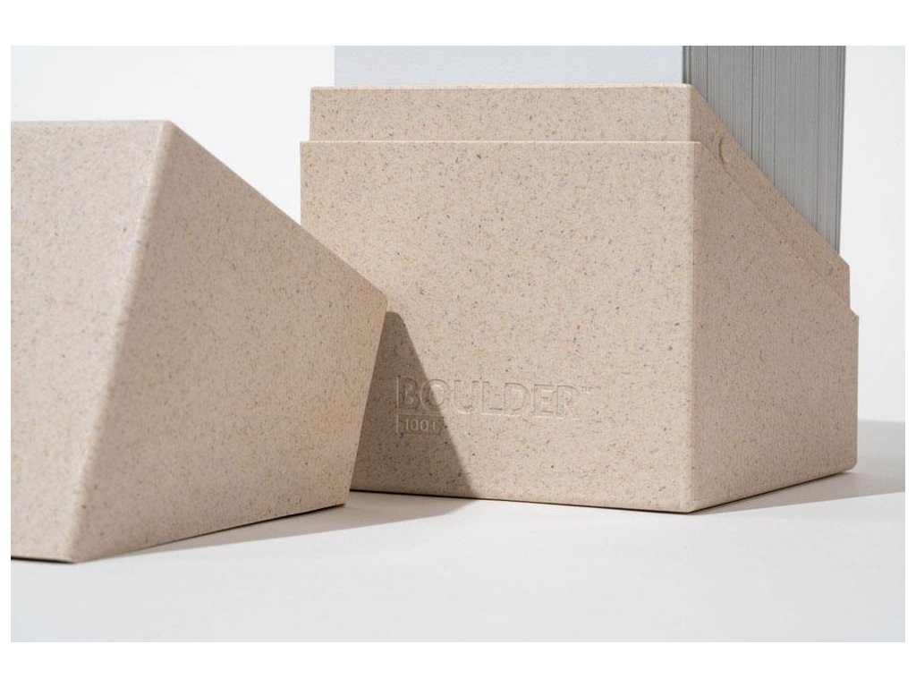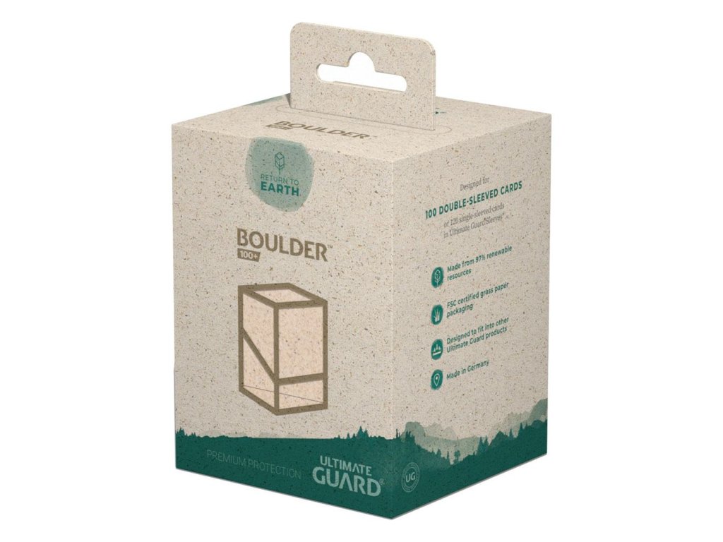 Vysokokvalitná a pevná ochranná krabička (box) až na 100 kariet v dvojitých baleniach (alebo 120 kariet v jednotlivých baleniach Ultimate Guard*). Boulder je navrhnutý tak, aby pasoval na iné príslušenstvo Ultimate Guard (SuperHive, ArkHive alebo Flip 'n' Tray), má bezpečné uzatváranie s pevným uzáverom.
