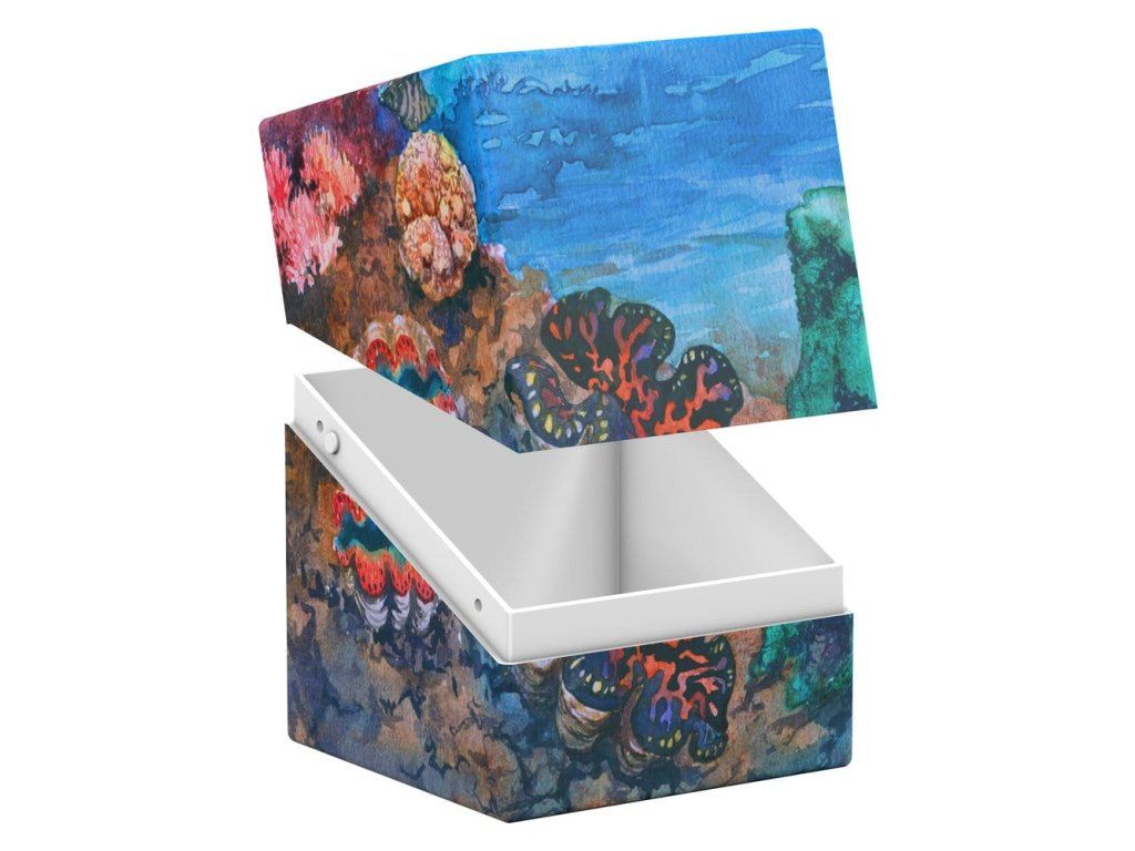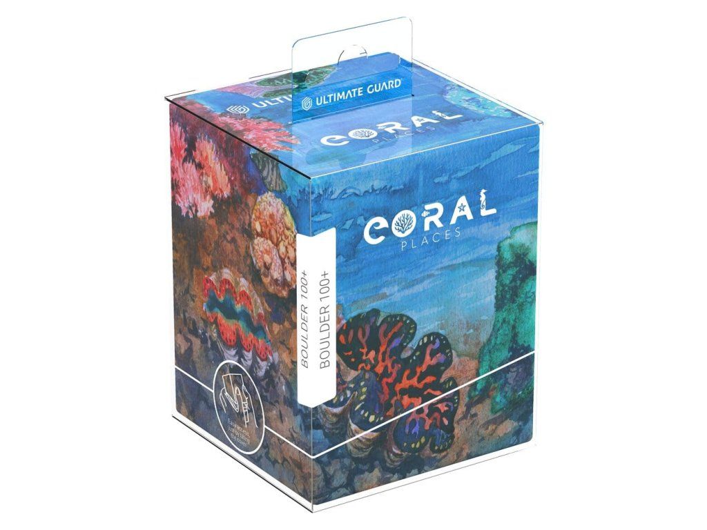 RTE Boulder 100+ od Ultimate Guard zo série "Coral Places" je odolná a spoľahlivá krabica na karty TCG vyrobená v Nemecku zo 78 % z obnoviteľných zdrojov. Napriek bezpečnému uzatváraniu sa RTE Boulder 100+ ľahko a pohodlne otvára a pojme 100 dvojbalených kariet Ultimate Guard*, čo z nej robí ideálnu krabičku na karty pre kartové hry ako Magic: The Gathering, Pokémon, Lorcana, Flesh and Blood, Yu-Gi-Oh!, Riftbound alebo One Piece. Krabička na karty má výraznú plnofarebnú potlač a dodáva sa v ekologickom obale vyrobenom zo 100 % recyklovaných a ďalej recyklovateľných materiálov. Balvany sú navrhnuté tak, aby sa dali kombinovať so všetkými krabicami na hromadné skladovanie kariet Ultimate Guard, obzvlášť dobre sa hodia ku krabiciam Arkhive, Superhive a Flip'n'Tray.
