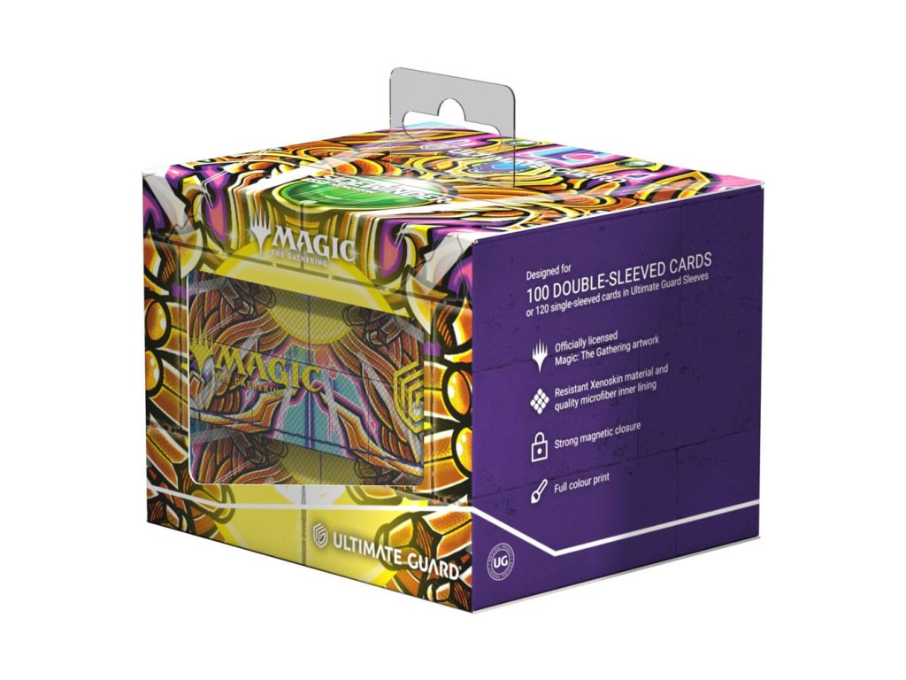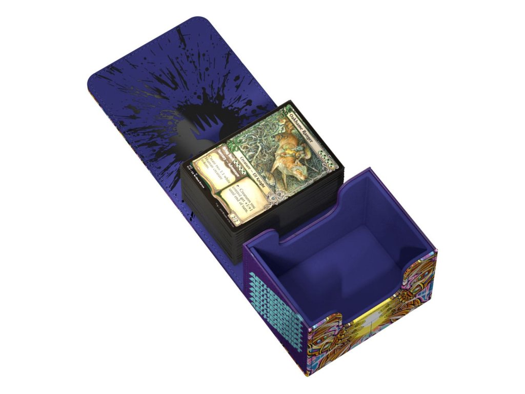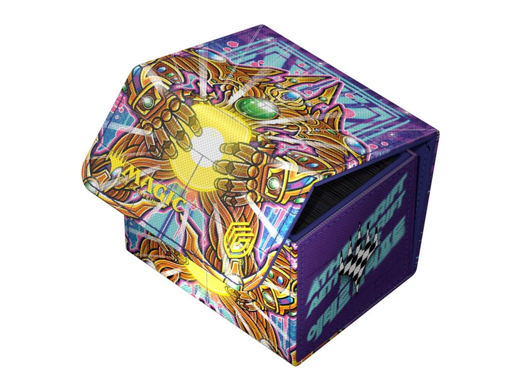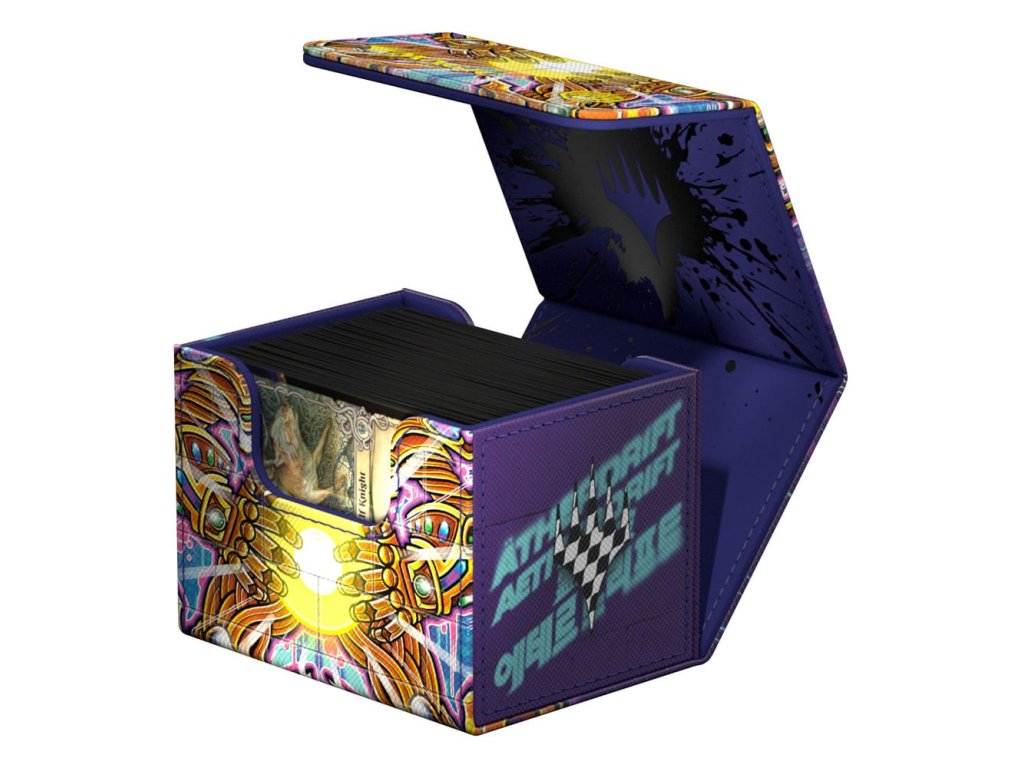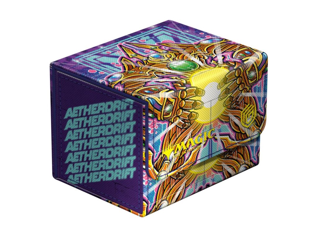Sidewinder 100+ Xenoskin je kvalitný box na balíčky TCG, ktorý ponúka prvotriednu ochranu kariet vďaka odolnému materiálu Xenoskin, podšívke z mikrovlákna a silnému magnetickému uzáveru, pričom stále poskytuje jednoduchý a pohodlný prístup k balíčku vo vnútri. Obaly na karty sú vytlačené v plnej farbe s oficiálne licencovanými obrázkami z pripravovanej sady Magic: The Gathering "Aetherdrift". Sidewinder 100+ Xenoskin je optimalizovaný na uloženie 100 kariet v dvojitom balení alebo 120 kariet v jednom balení v puzdrách Ultimate Guard.