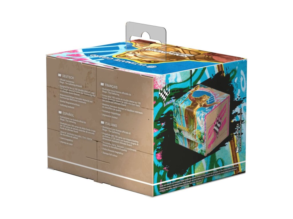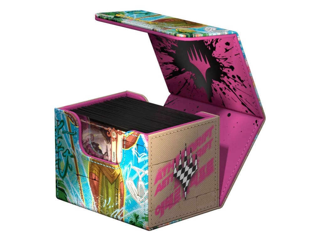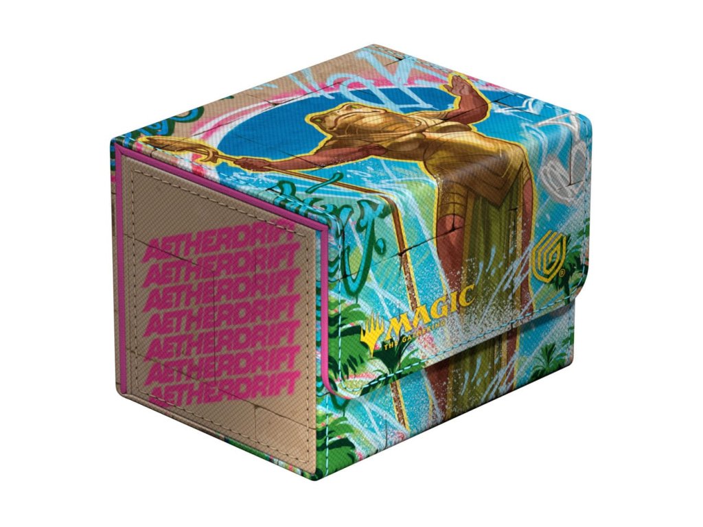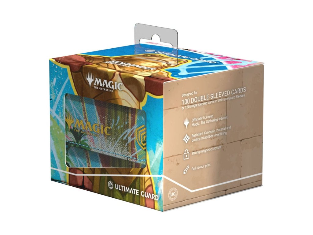Sidewinder 100+ Xenoskin je vysokokvalitný box na karty TCG, ktorý ponúka prvotriednu ochranu kariet vďaka odolnému materiálu Xenoskin, vnútornej podšívke z mikrovlákna a silnému magnetickému uzáveru, pričom stále poskytuje jednoduchý a pohodlný prístup k balíčku vo vnútri. Puzdrá na karty majú plnofarebnú potlač s oficiálne licencovanými dielmi z pripravovanej sady Magic: The Gathering "Aetherdrift". Sidewinder 100+ Xenoskin je optimalizovaný na uloženie 100 dvojbalených alebo 120 jednobalených kariet v obaloch Ultimate Guard.