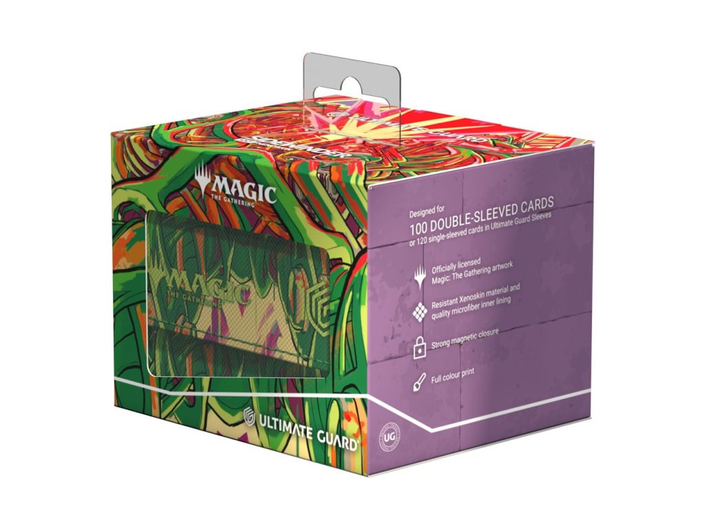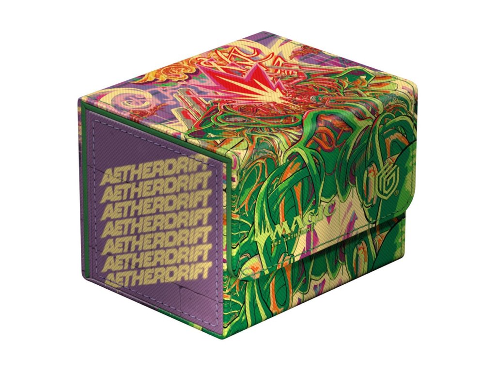 Sidewinder 100+ Xenoskin je kvalitný box na balíčky TCG, ktorý vďaka odolnému materiálu Xenoskin, vnútornej podšívke z mikrovlákna a silnému magnetickému uzáveru ponúka prvotriednu ochranu kariet a zároveň umožňuje jednoduchý a pohodlný prístup k balíčku vo vnútri. Puzdrá na karty sú potlačené plnofarebnými oficiálne licencovanými dielmi z pripravovanej sady Magic: The Gathering "Aetherdrift". Sidewinder 100+ Xenoskin je optimalizovaný tak, aby sa do neho zmestilo 100 dvojfarebných alebo 120 jednofarebných kariet v obaloch Ultimate Guard.