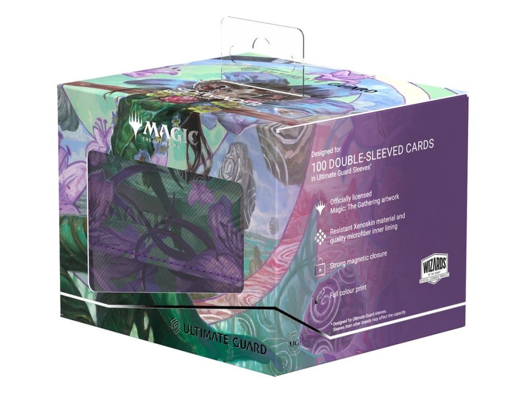 Sidewinder 100+ je vyrobený z odolného materiálu Xenoskin a pojme až 100 dvakrát zabalených kariet*, ktoré sú bezpečne uložené v schránke na karty vďaka silnému magnetickému uzáveru a mäkkej vnútornej podšívke z mikrovlákna. Odolný, vysokokvalitný povrch Sidewinderu z materiálu Xenoskin je potlačený plnofarebnou oficiálne licencovanou grafikou zo sady Magic: The Gathering "Lorwyn Eclipsed".