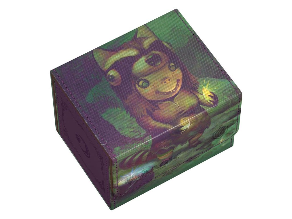 Sidewinder 100+ je vyrobený z odolného materiálu Xenoskin a pojme až 100 kariet s dvojitým poťahom*, ktoré sú bezpečne chránené v schránke na karty so silným magnetickým uzáverom a mäkkou vnútornou podšívkou z mikrovlákna. Odolný, vysokokvalitný povrch Xenoskin Sidewinder je potlačený plnofarebnou grafikou s oficiálnou licenciou zo sady "Lorwyn Eclipsed" hry Magic: The Gathering.