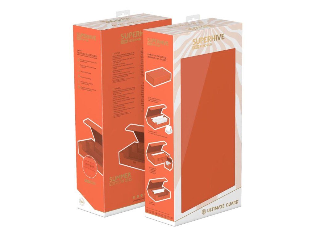 Zažite dokonalú letnú atmosféru s Xenoskinom Ultimate Guard Superhive 550+ z limitovanej "Letnej edície 2025" v štyroch nových žiarivých farbách: Dandelion, Peach, Lime a Lagoon! Hromadný úložný box Superhive je navrhnutý tak, aby sa doň zmestili dve herné podložky a až 550 kariet v dvojitých obaloch (650 v jednoduchých obaloch), štyri balíčky Sidewinder 100+ alebo päť balíčkov Boulder 100+, a obsahuje dodatočný priestor na príslušenstvo. Silný magnetický uzáver s dodatočným zámkom ZnapClaw, odolný materiál Xenoskin a kvalitná vnútorná podšívka z mikrovlákna zaručujú bezpečné uloženie obsahu Superhive.
