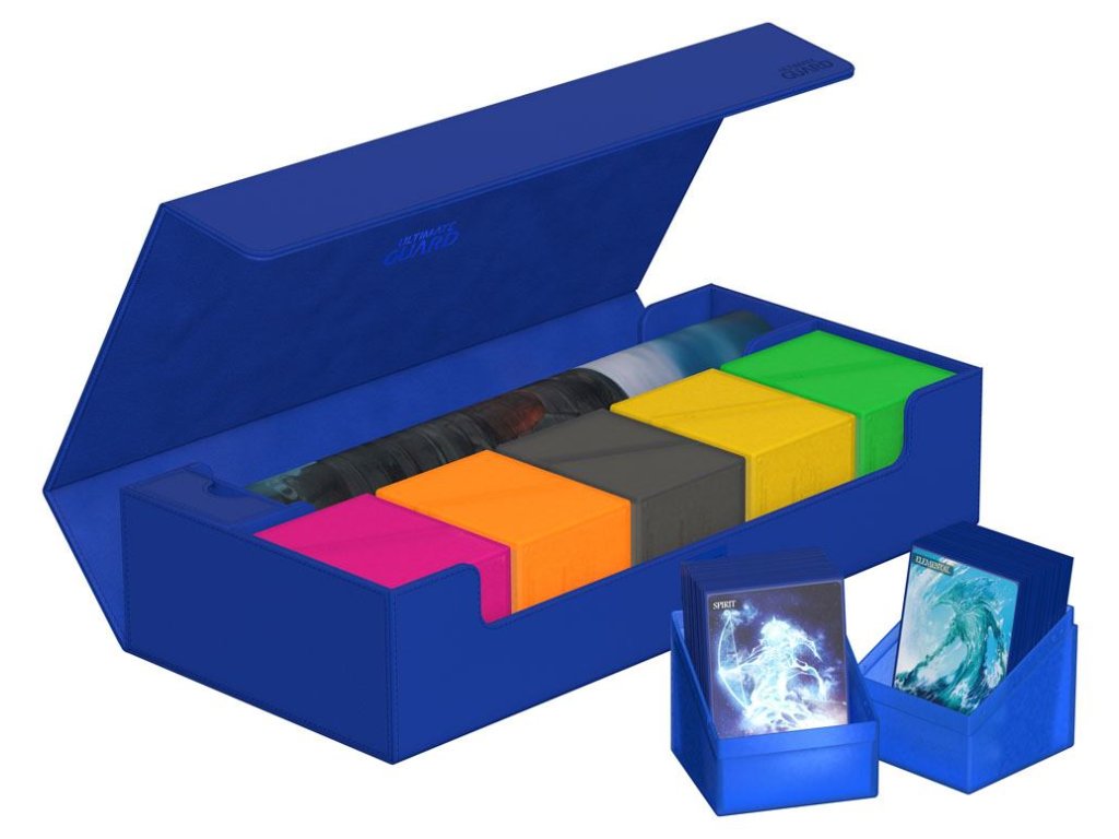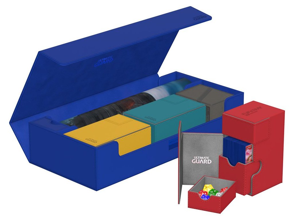 Náš Superhive ponúka priestor na všetko, čo potrebujete počas herných relácií. Vďaka priehradkám na viacero puzdier na karty, dve hracie podložky a príslušenstvo vám Superhive ponúka nekonečné možnosti využitia. V kombinácii s našimi Sidewinders sa vám do boxu zmestí až 550+ dvojbalených kariet, 650+ jednobalených kariet alebo 1100+ nezabalených kariet štandardnej veľkosti.* ZnapClaw, náš patentovaný silný magnetický uzáver, udrží Superhive vždy zatvorený. Príklady toho, čo môže obsahovať: - 5x Sidewinder 80+ alebo 4x Sidewinder 100+ plus extra úložný priestor - 5x Boulder 100+ alebo 6x Boulder 80+ alebo 7x Boulder 60+ alebo 11x Boulder 40+ - 550+ kariet s dvojitým obalom alebo 650+ kariet s jednoduchým obalom alebo 1100+ nezabalených kariet - 2x Flip'n'Tray 80+ alebo 5x Flip Deck Case 80+ alebo 4x Flip Deck Case 100+ plus extra úložný priestor - 230+ Top-Loaders (štandardná veľkosť, 12 míľ) - 5x Deck Case 100+ alebo 6x Deck Case 80+ plus ďalší úložný priestor - Určené pre 550 dvojobalových kariet alebo 650 jednoobalových kariet v puzdrách Ultimate Guard štandardnej veľkosti - Určené pre dve hracie podložky - Modulárna konštrukcia na uloženie rôznych produktov Ultimate Guard Pohodlné na prenášanie viacerých balíčkov - Jednoduchý prístup - Vynikajúce na kockovanie - Odolný materiál Xenoskin - Jednofarebné prevedenie s kvalitnou vnútornou podšívkou z mikrovlákna - Silný magnetický uzáver s prídavným uzamykacím mechanizmom ZnapClaw * Určené pre obaly Ultimate Guard. Obaly iných značiek môžu ovplyvniť kapacitu/kompatibilitu. Rozmery cca 406 x 199 x 90 mm Hlavný priestor (vnútorný rozmer) cca 400 x 70 x 80 mm Priestor na hraciu podložku (vnútorný rozmer) cca 361 x 70 x 81 mm Priestor na kocky (vnútorný rozmer) cca 70 x 80 x 33 mm.Dodatočné parametre