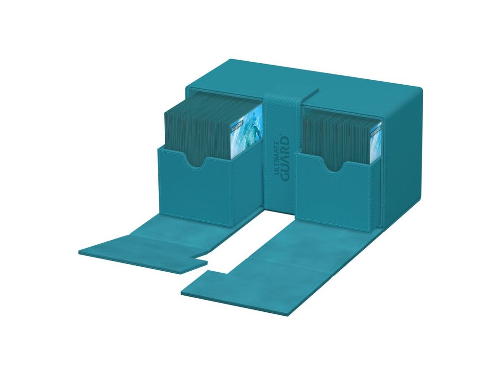 Jeden box, dve karty a viac príslušenstva: náš Twin Flip'n'Tray 200+ ponúka všetky funkcie, ktoré skvelý box na karty potrebuje. Tento box je dvojnásobne väčší ako náš klasický Flip'n'Tray 100+, je to veľký súrodenec, ktorého každý hľadá. Do krabičky Twin Flip'n'Tray 200+ sa zmestí 200 dvojbalených alebo 240 jednobalených štandardných kariet*. - Navrhnutý tak, aby pojal 200 dvojbalených alebo 240 jednobalených štandardných kariet v puzdrách Ultimate Guard* - Modulárny dizajn kombinovateľný so širokou škálou produktov Ultimate Guard - Odnímateľné zásobníky na karty a príslušenstvo - Nezávislý prístup ku každému zásobníku - Odolný materiál Xenoskin - Jednofarebné vyhotovenie s kvalitnou vnútornou podšívkou z mikrovlákna - Silné magnetické uzatváranie Rozmery cca: 114 x 203 x 90 mm Priehradka na karty (2x) (vnútorné rozmery) cca: 100 x 77 x 81 mm Zásobník na karty (2x) (vnútorné rozmery) cca: 68 x 59 x 70 mm Priehradka na kocky (vnútorné rozmery) cca: 100 x 34 x 81 mm Zásobník na kocky (vnútorné rozmery) cca: 91 x 27 x 70 mm * Určené pre balenie Ultimate Guard. Obaly iných značiek môžu ovplyvniť kapacitu/kompatibilitu.Dodatočné parametre